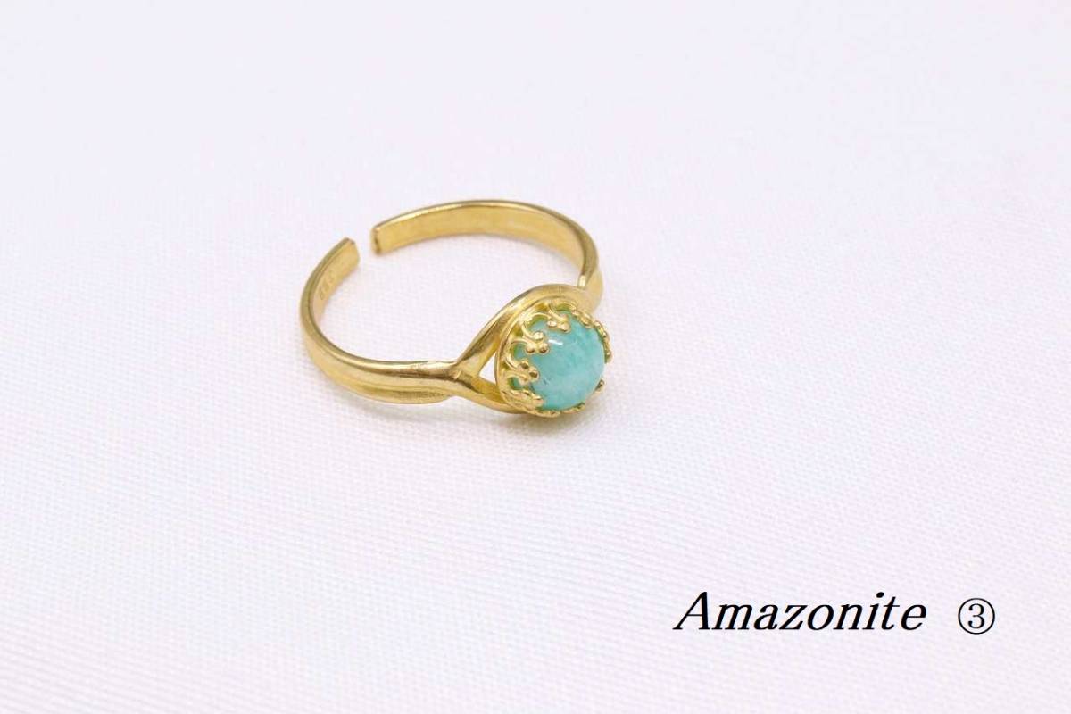 【★HR456③】天然石 アマゾナイト エレガント ダブル ウェーブ 真鍮 リング 指輪 フリーサイズ パワーストーン 希望【送料全国一律198円】