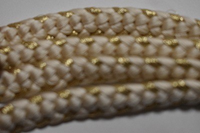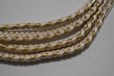 帯締め 正絹 平組 白・金 和装小物 中古美品 oj81★喜香★