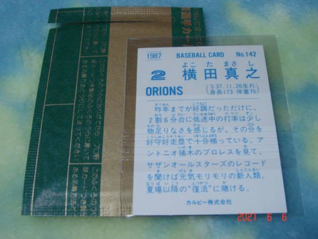 激レア 未開封・開封品・袋付き カルビー87年 プロ野球カード NO.142 (横田/ロッテ) 極美品