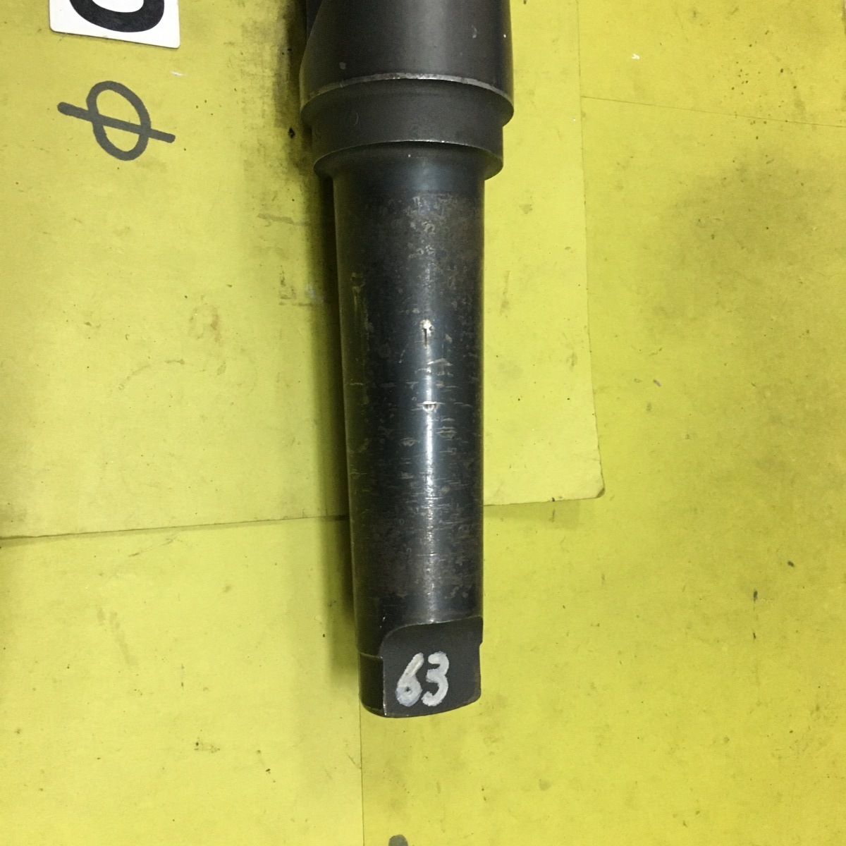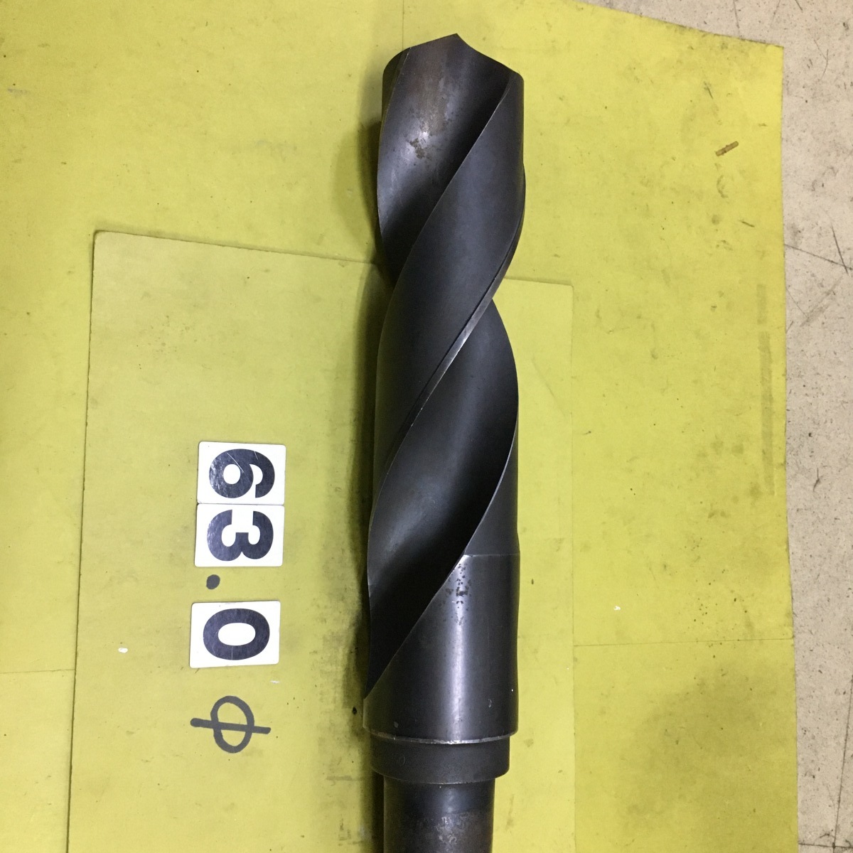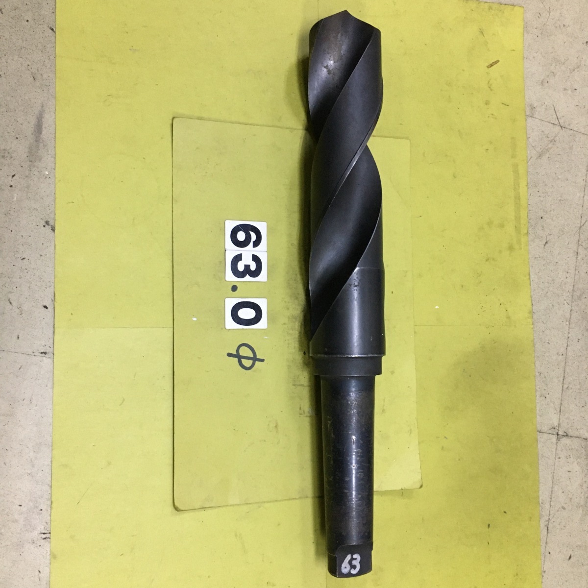 テーパードリルの中古品 63.0φです。シャンクはMT5です。刃長は 255mmです。写真の現状有り姿渡しでご入札下さい。