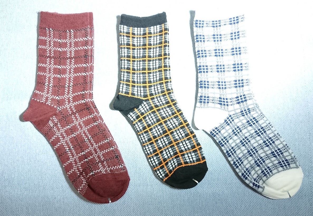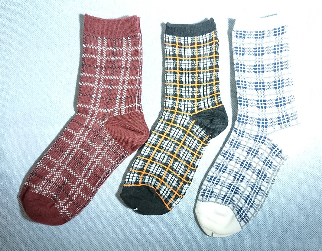 チェック柄がオシャレなクルーソックス 3足セット未使用です。