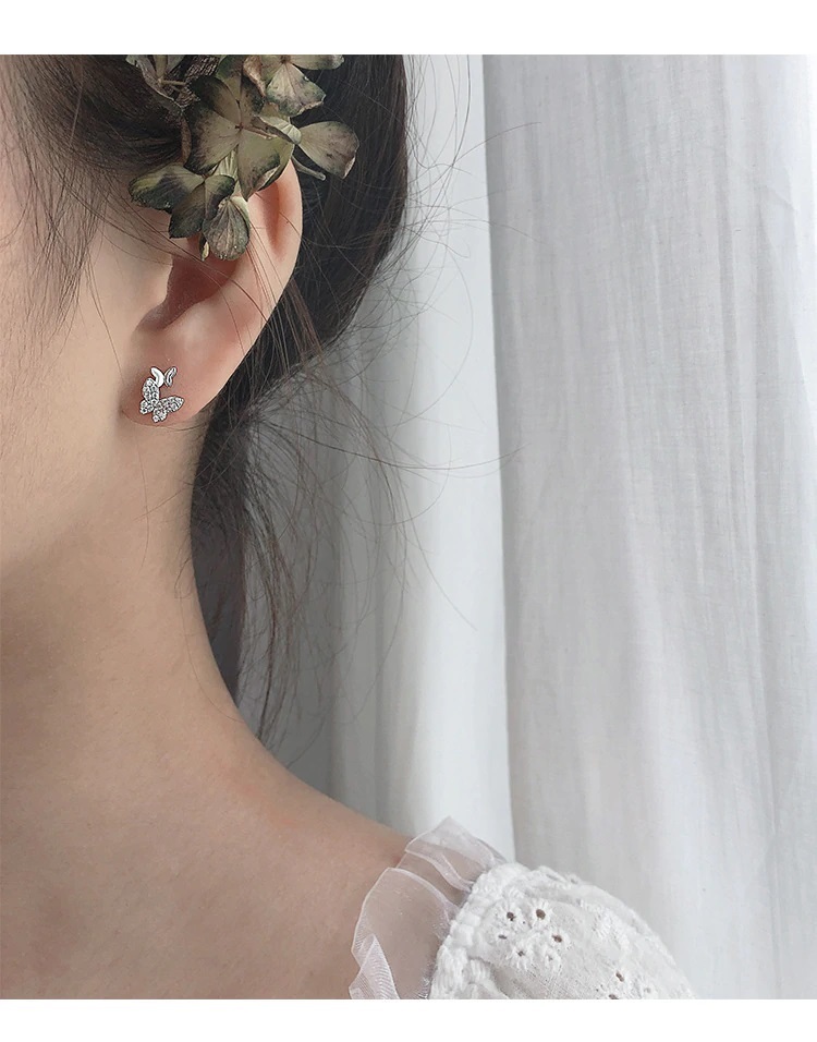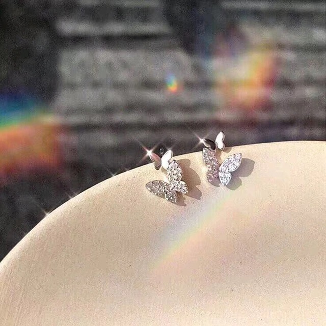バタフライ クリスタルピアス シルバー レディース 韓国 K-POP butterfly