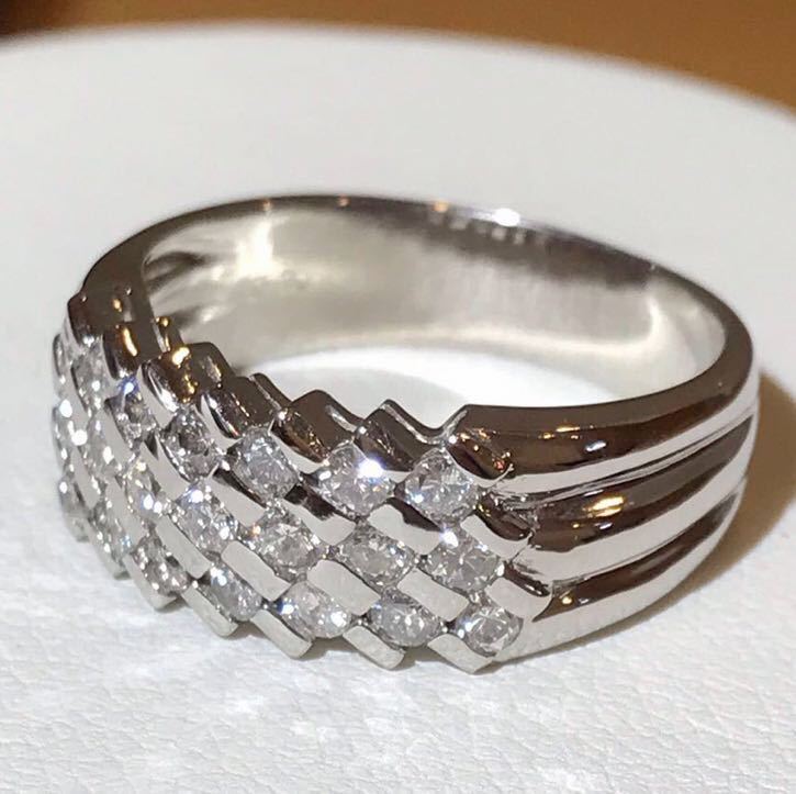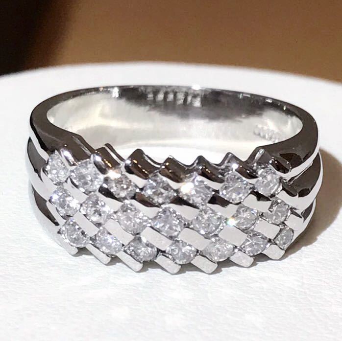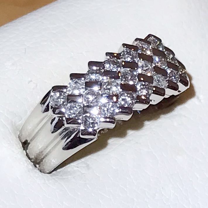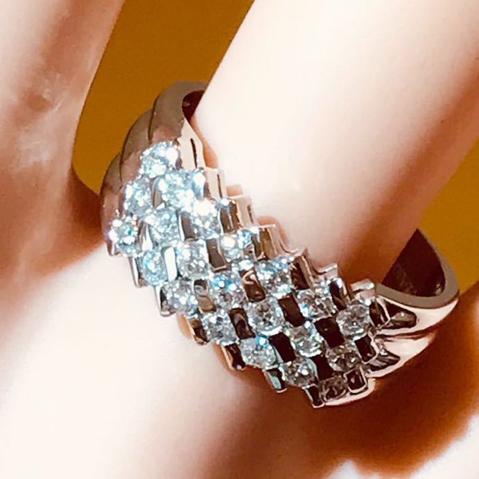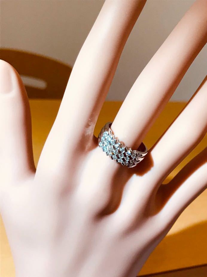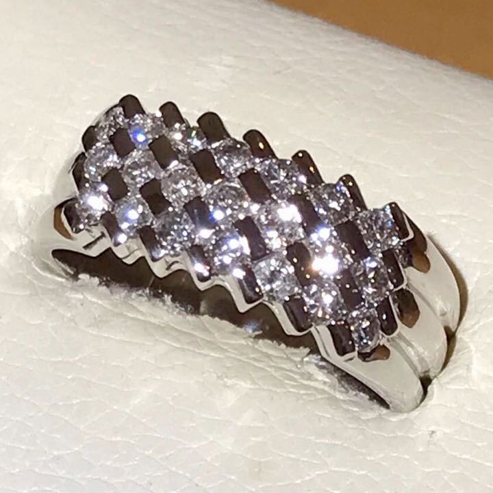 こちらは、Pt900台にダイヤ21石付きデザインリングです。