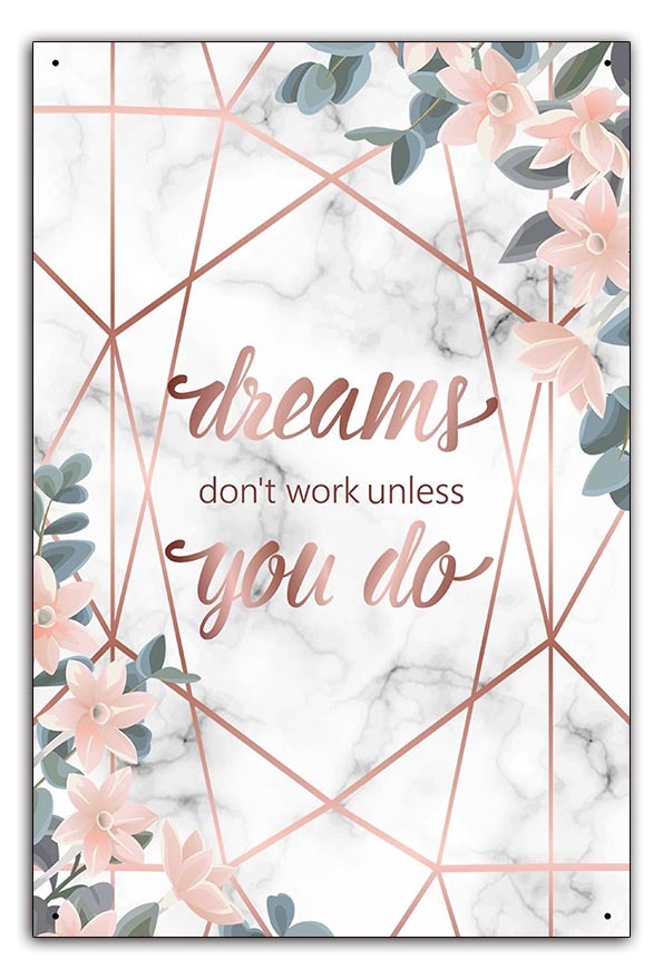 BMW02-大理石柄 ワード入り 英語 English one words 一言 marble メタルプレート ブリキ板 ヴィンテージ plate 装飾 映え インテリア 模写