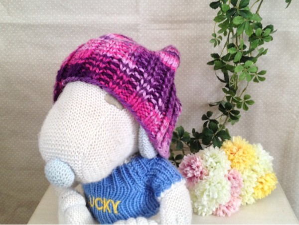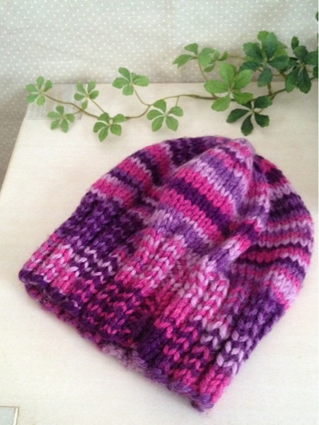 **ピンク、紫系のミックスカラーニット帽・幼稚園サイズ**