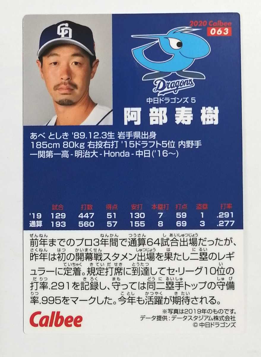 阿部寿樹(063)中日ドラゴンズ/2020プロ野球チップス第1弾カード【即決】
