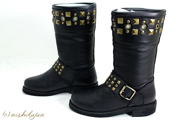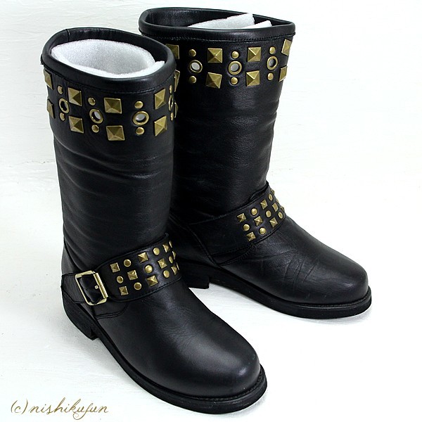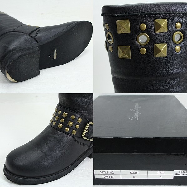 ご覧いただきありがとうございます。 気持ちのよいお取引となるよう心がけておりますので どうぞ安心ください。 Candy Stripper/キャンディストリッパーのエンジニアブーツです。 お色はブラックです。 定番のエンジニアブーツ スタッズのデザインがポイントの一足です。 金具はゴールド、若干光沢感のあるレザーで かっこいい雰囲気です。はきやすさも◎ サイズ表記はSです。 ■全長:25.5 cm ■幅(靴底):9.0 cm ■ヒール高:3.5 cm ■高さ:29.0 cm ■素材:ソフトレザー 写真の通り、特に目立った汚れはありませんが、使用感はございます。 商品写真には箱がございますが、こちらは本体のみの出品となります。 箱は付属いたしませんので、ご了承くださいませ。 H-2580 |