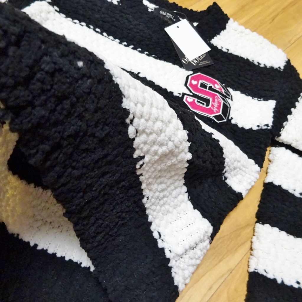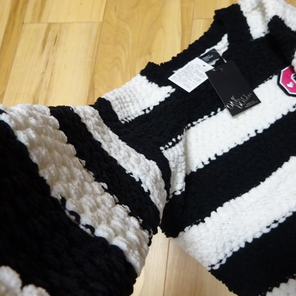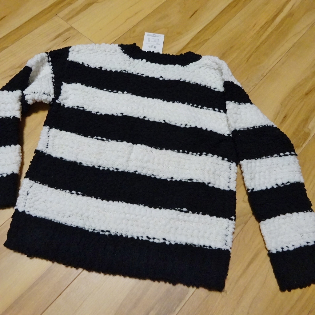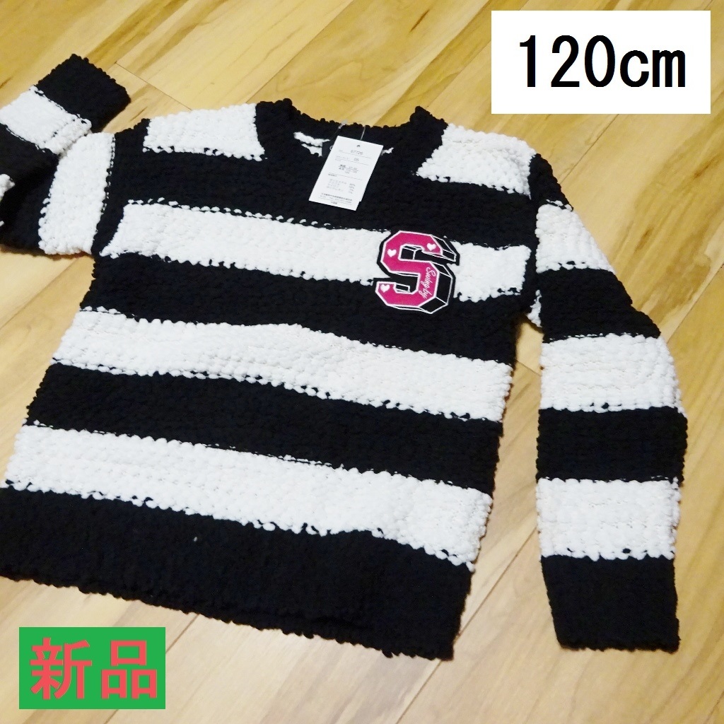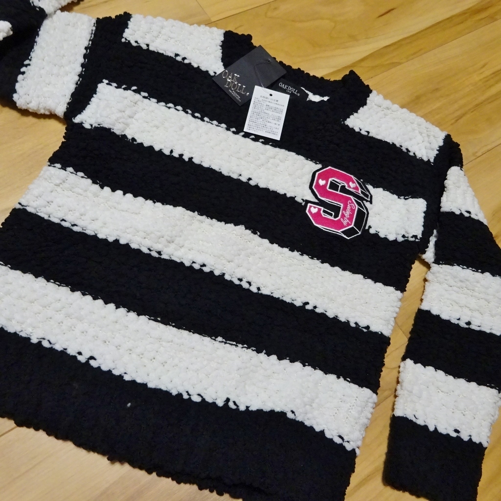 新品 OAK DOLL セーター【 KIDS 120cm 】白x黒ボーダー モコモコ 長袖