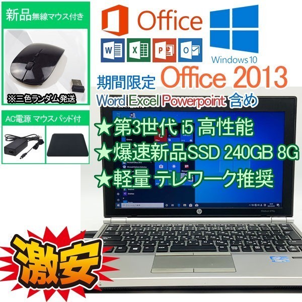 | 軽量 新品SSD 240GB 第3世代 i5 3337U Windows 10 Pro Office 2013 HP 8GB WIFI テレワーク 中古PC ワード エクセル パワーポイント 07/管理番号:20210301_07 | |