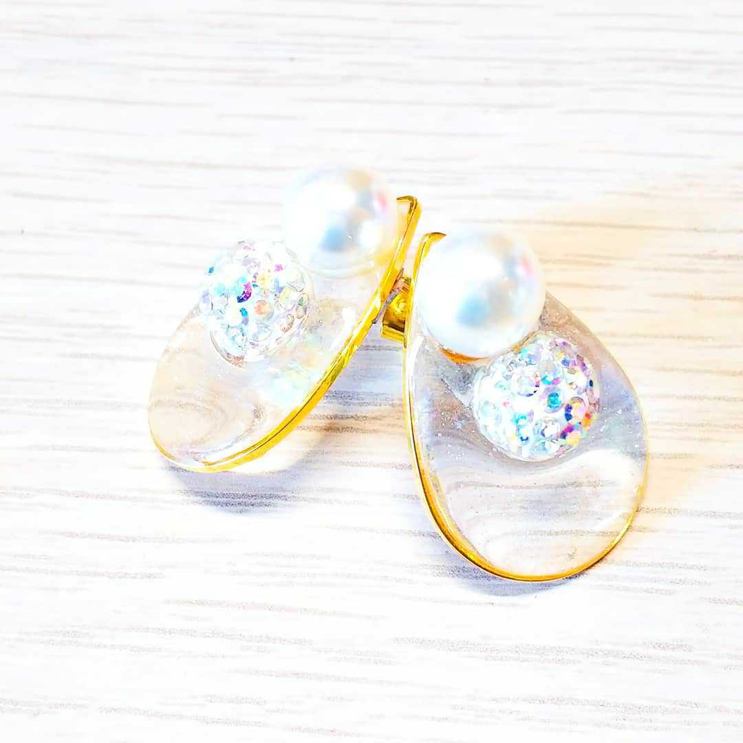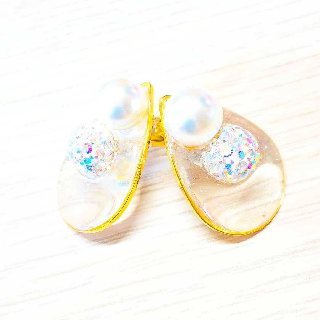 *パールとパヴェボールの組み合わせがかわいいピアスです*