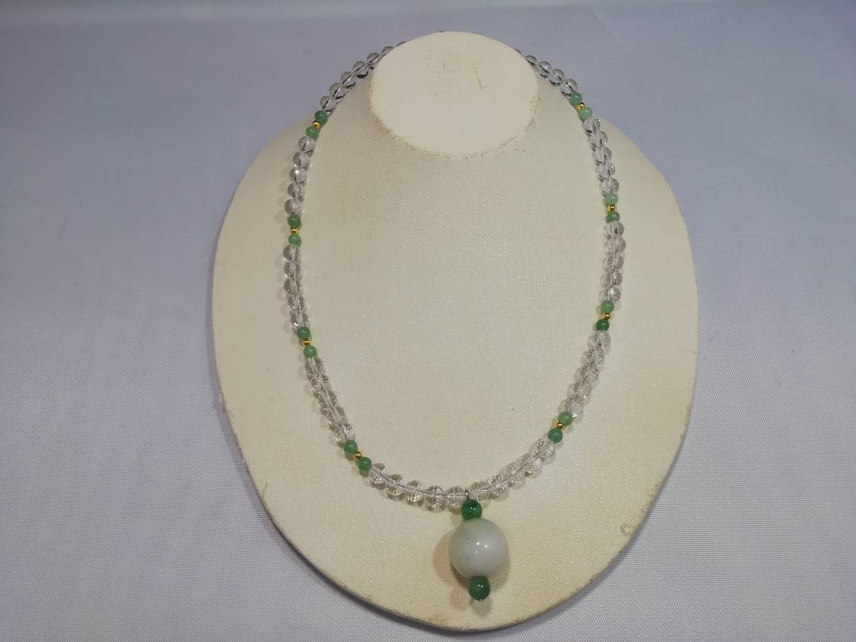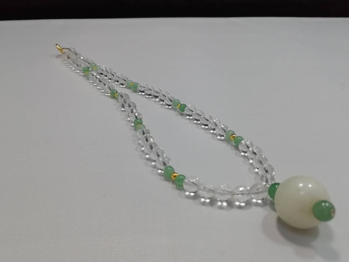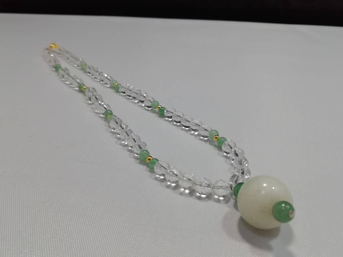 天然石水晶ネックレス&インド翡翠ペンダントザインネックレス