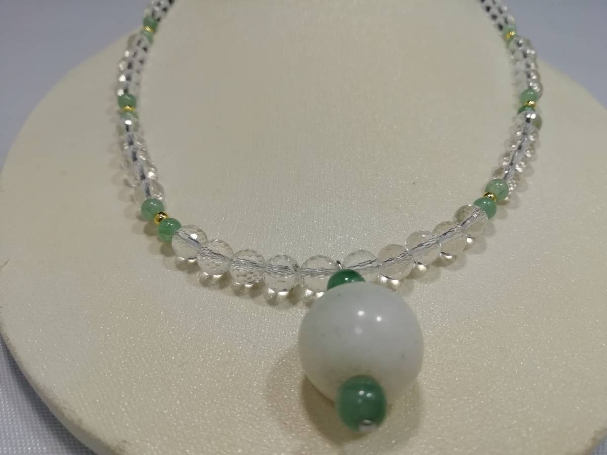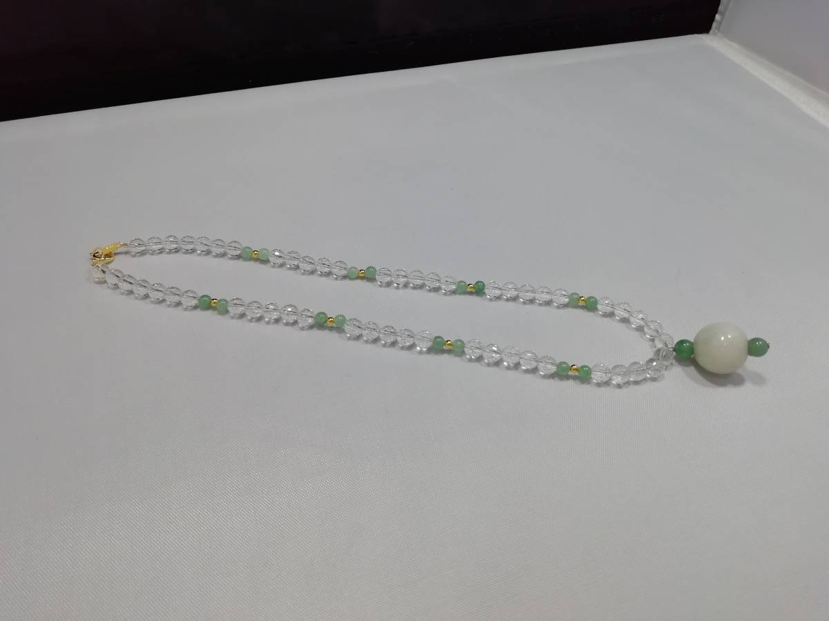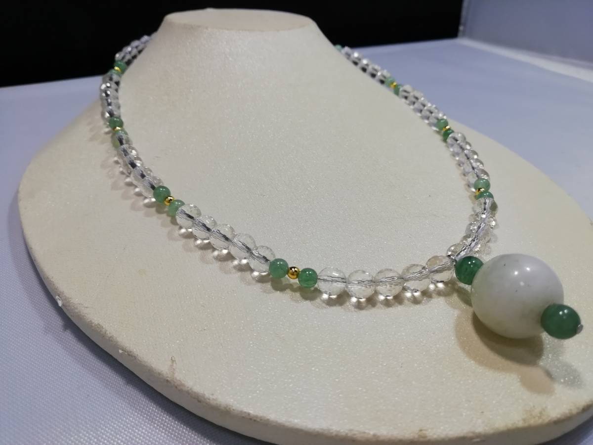 天然石水晶ネックレス&インド翡翠ペンダントザインネックレス