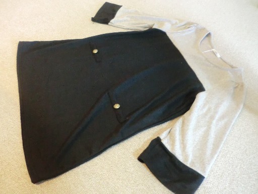 【KCM】yng-23-M★新品未使用★【Ailes 】7分袖 チュニック ボタン付き M ブラック レディース