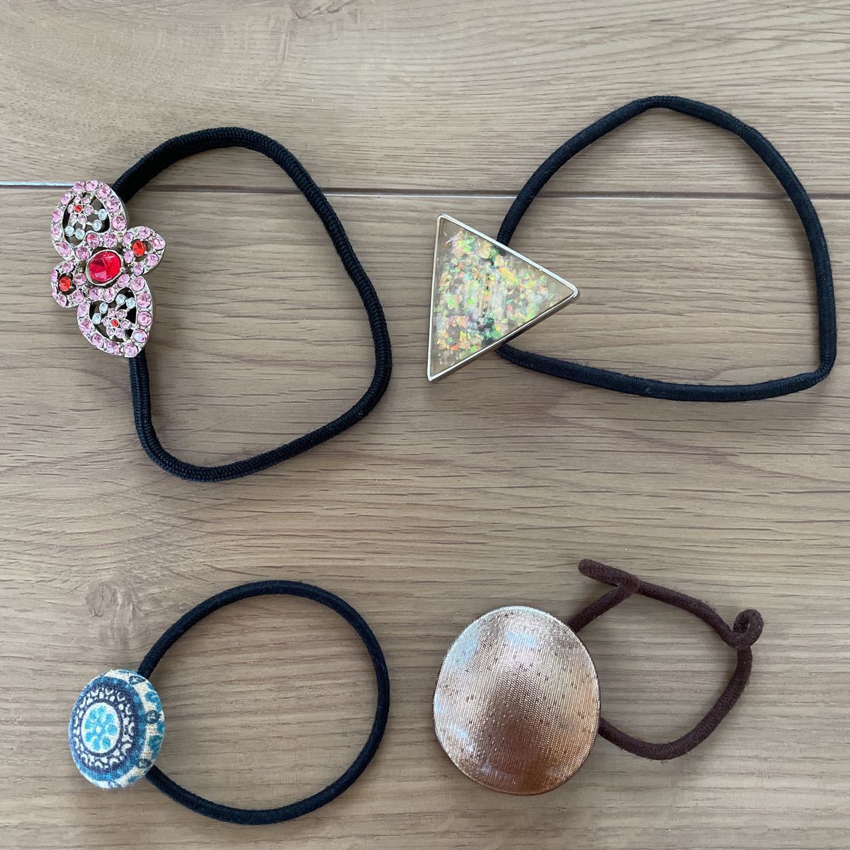 ヘアアクセ4個セットです。下の二つはゴムを替えてまた使えるタイプです。もう使わなくなったので今回どなたかご入り用の方にお譲りいたします。ゴムが伸びているものもあります。現状渡しとさせて頂きます。画像が全てです。必ずご確認下さい。NC.NRです。