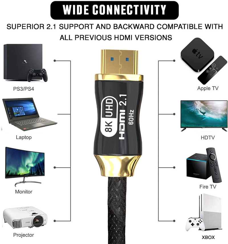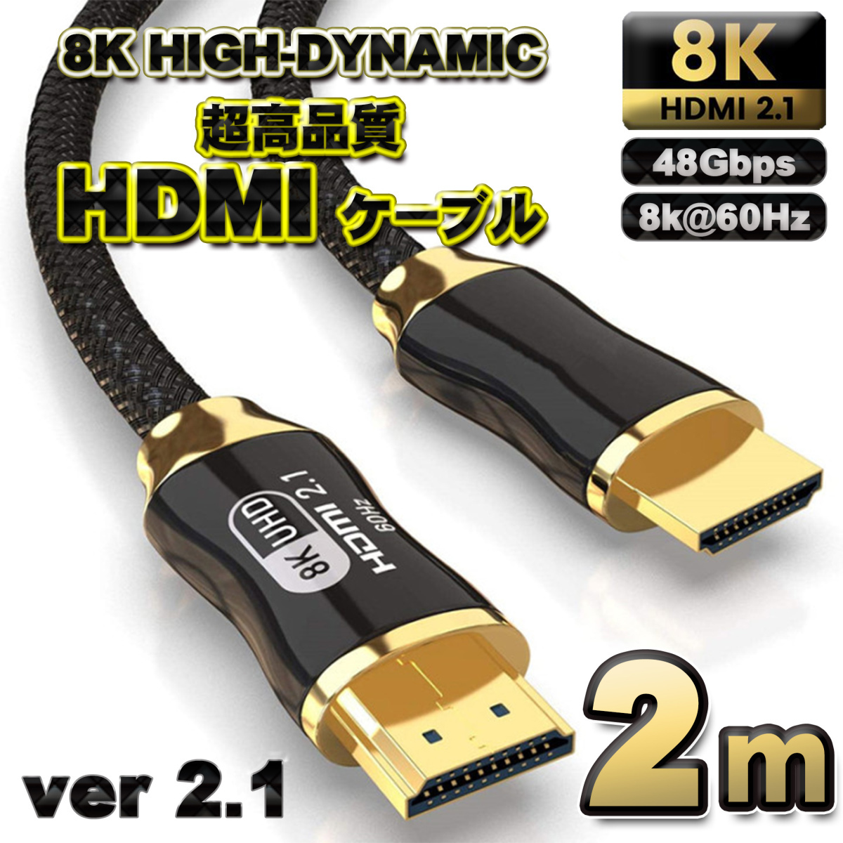 HDMI ケーブル 8K HDMI2.1 ケーブル 48Gbps 対応 Ver2.1 フルハイビジョン 8K/60Hz 4K/120Hz 3D UHD HDR QHD イーサネット対応■ケーブルの長さ■・2メートル(Ver.2.1)■対応規格HDMI Ver 2.1■詳細HIGH-SPEED / Ethernet / 3D / 4K /8K 対応プレイステーション3やプレイステーション4XBOXにも対応基本的にHDMI端子さえあれば、対応してます。HDMI2.1 ケーブル:HDMI 2.1ポートで帯域幅を48Gbpsに拡張します。 8K@120Hz、4K@120Hz、UHD、FHD、3D、イーサネット、オーディオリターンチャンネル、HDR 4:4カラーフォーマット、48ビット/px 色深度をサポート。 1080pと同等の4倍のクリア。 HDMI 2.1テクノロジーは、HDMI2.0b/2.0a/2.0/1.4/1.3/1.2/1.1との下位互換性があります。HDMI 2.1の新しい標準機能で、最先端のオーディオフォーマットと最高のオーディオ品質をサポートします。動的HDRは、現在のHDR10の拡張規格であり、より鮮明な詳細を提供し、写真をよりリアルにします。4K/8K(7680x4320ピクセル)に対応。お得な商品をどしどし出品してますので、宜しくお願いします。