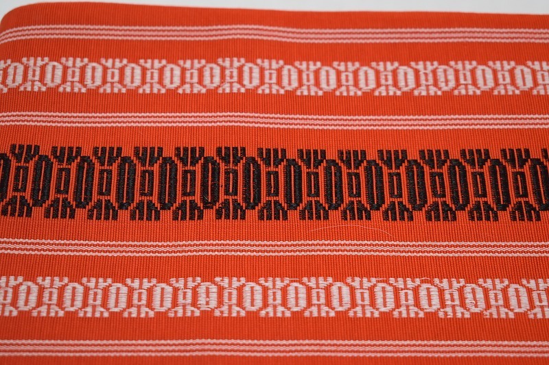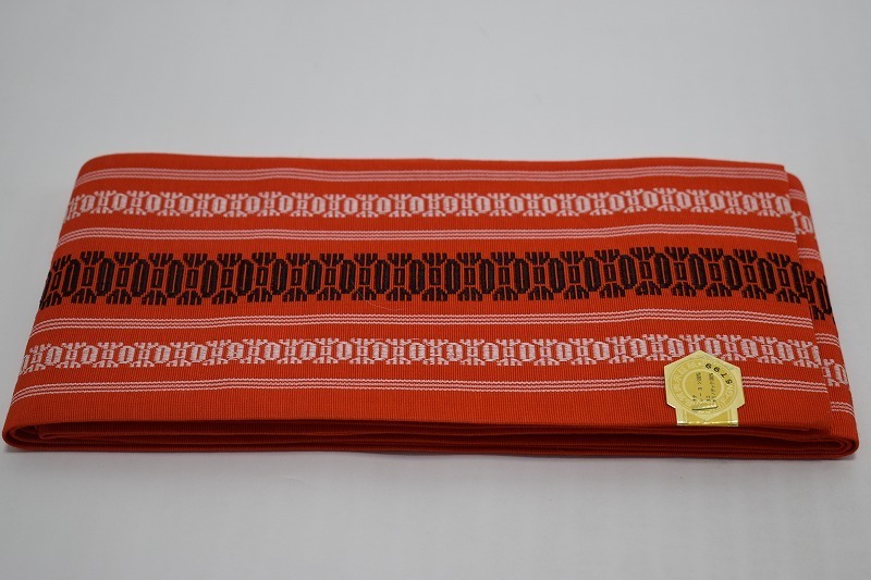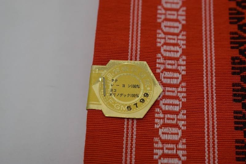 博多織 半幅帯 化繊 小袋帯 朱色 中古美品 han17★喜香★