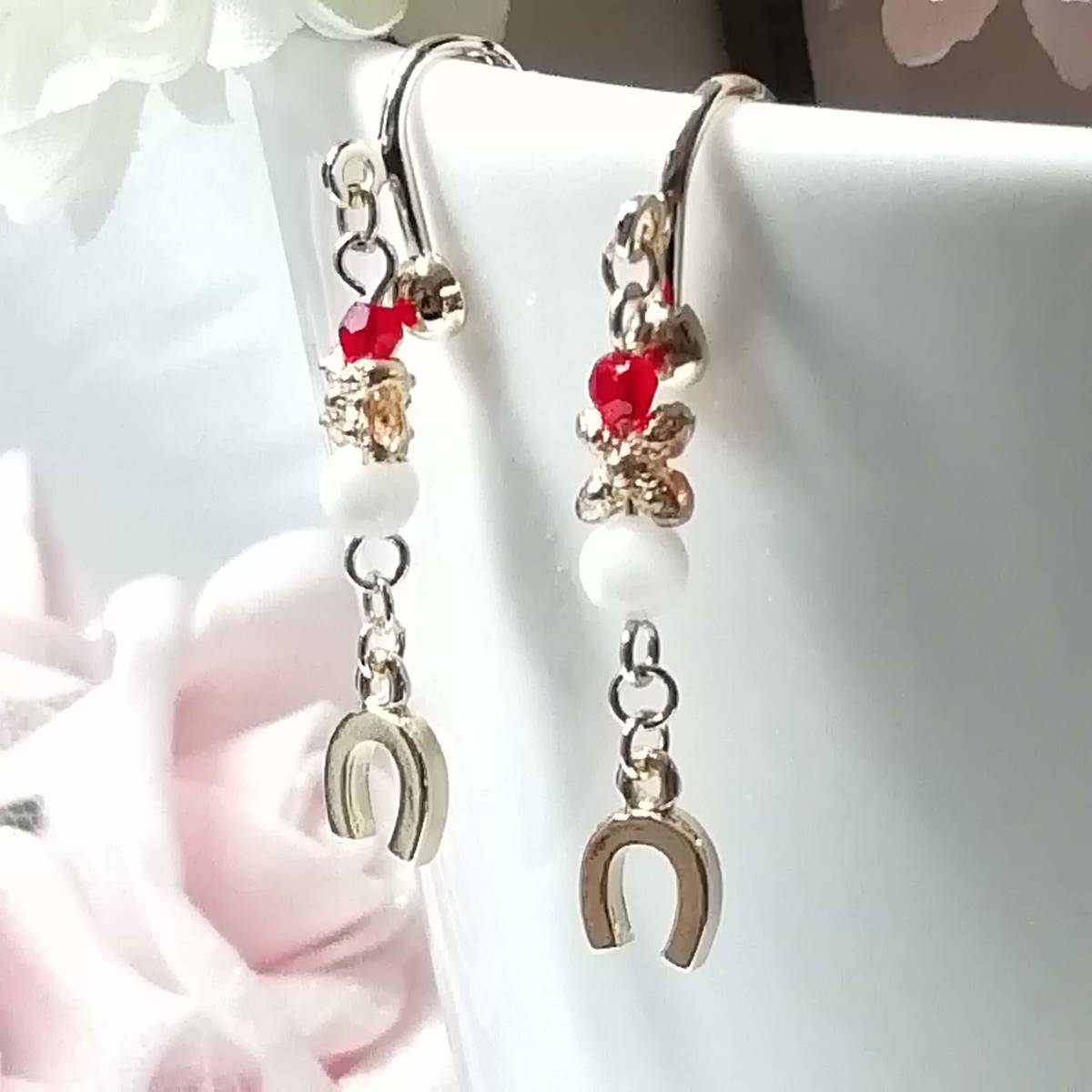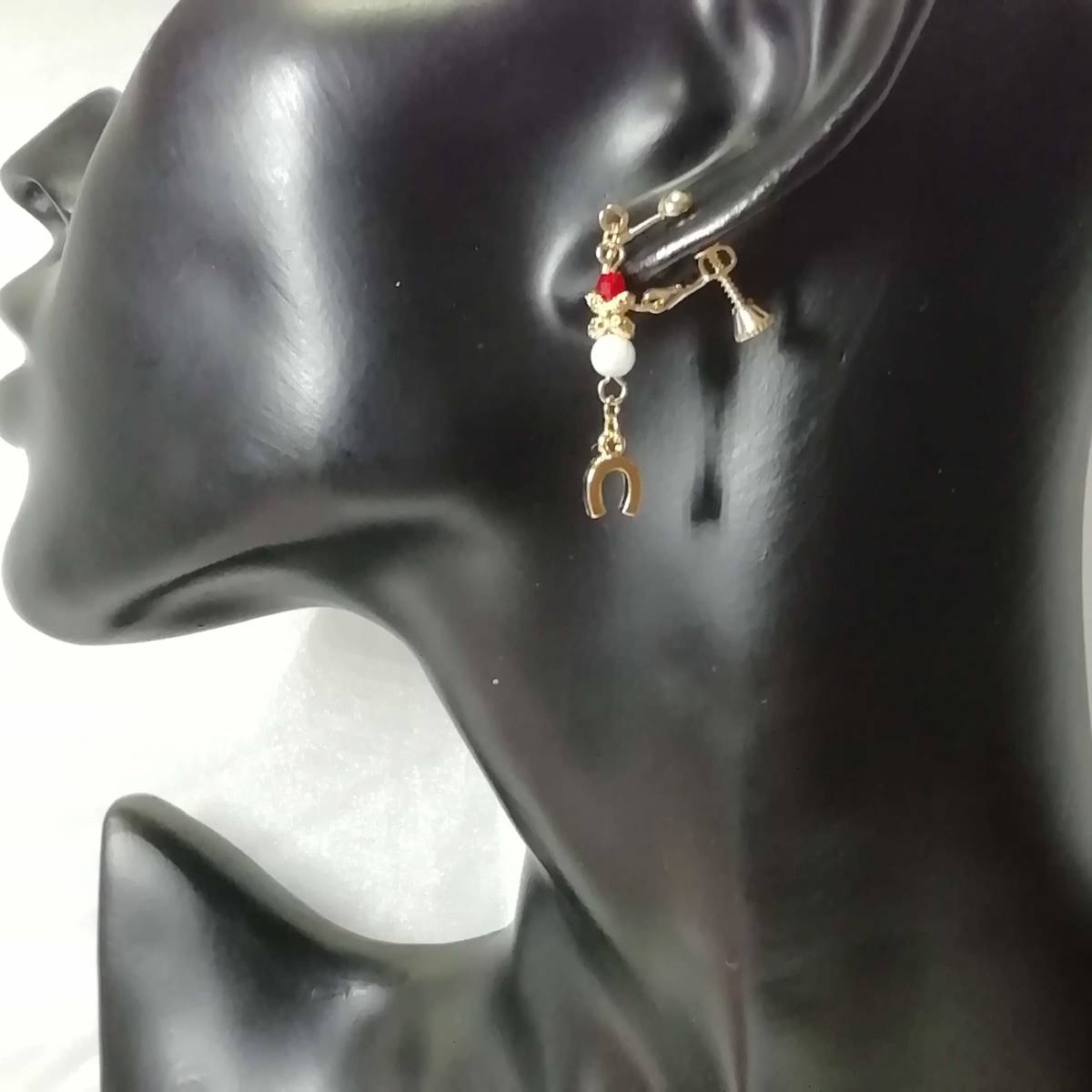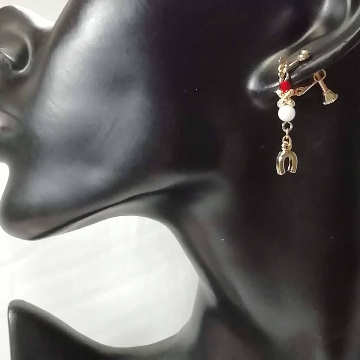 ★商品内容★ 馬蹄チャームとライトシャムのハンドメイドイヤリング★スワロフスキー/上品/赤/k16GP/天然石/マザーオブパール//ゴージャス/白/乳白色 天然石マザーオブパールとスワロフスキーライトシャムの組み合わせが、 スタイリッシュな大人の女性らしさを印象付ける短めサイズのイヤリングです*・.**.・。**.・。*・**。・ ゴールドのクロスフラワーと k16GPの馬蹄チャームの煌きが上品でゴージャスです*・.**.・。**.・。*・**。・ 普段使いはもちろん、お出掛けや お洒落のワンポイントにも最適です*・**.・。**.・。*・**。・. 【素材】 馬蹄チャームk16GP 7mm 天然石マザーオブパール4mm スワロフスキー5000ダイヤカットライトシャム4mm クロスフラワーゴールド カンより垂れ下がる長さは、約2.8㎝です。 Eー823 ★注意事項★ ***~ご購入前に必ずお読み下さい~*** *・*・*落札後について*・*・* *落札後4日以内にお手続き、ご連絡が無い場合は落札者都合で削除致します。 *発送日指定・ご入金の予定が1週間以上先をお考えの方は、入札の前に質問よりご連絡くださいませ。 予めご了承の上、ノークレーム・ノーリターンでお願い致します。 *・*・*商品について*・*・* *一点一点心を込めて作っておりますが、手作りなため多少の歪み等あるかもしれません。 手作りの味わいと、世界で一つだけの作品とお考えいただければ幸いです。 *デリケートな商品ですので、強く引っ張ったりすると破損する事もあります。 お取り扱いにはご注意ください。 *ご覧のPC、スマホによっては画像と実物の色味が多少異なる場合があります。 *基本イヤリング金具は跳ね上げネジ付き金具にて作成しております。 **ご希望によりピアスへの変更も承っております。 【フックピアス…無料/キャッチピアス…別途追加料金120円】 *その他…樹脂ノンホールピアス(無料)・カン付き樹脂ノンホールピアス(別途追加料金20円)にも変更をお受け致します。 ~ご注文の際にメッセージ欄よりお申し付け下さい~ 尚、金具変更のご希望が無い場合は、掲載された写真の金具にてお送り致します。 *金属アレルギーや化学物質アレルギーなどへの対応はしておりませんので、ご心配な方はご遠慮下さいますようお願い致します。 *永くご愛用頂くために、ご使用後は柔らかい布等で軽く拭いてください。 *・*・*プレゼント用梱包のご要望もお受けいたします*・*・* *その際は、梱包費用が別途で必要となりますのでご注意ください。 また、ご希望の梱包タイプによって、発送方法が変わりますので、送料が別途必要となります。 プレゼント用梱包タイプ 【袋→100円】 発送方法【クリックポスト(送料無料)】 プレゼント用梱包タイプ 【箱→200円】 発送方法【レターパックプラス(別途520円)】 袋タイプは【合計100円の追加料金】、箱タイプは【合計720円の追加料金】となります。 ◆ご希望の場合は、必ず商品ページをウォッチリストに登録した上で落札前に質問にてお問合せ下さい。◆ ◆ご希望を承り次第、一度出品を取り消し、プレゼント用梱包費用、送料などを追加した金額へ変更し、再出品致します。◆ *再出品後に再度検索して頂く手間が省けますため、プレゼント梱包をご希望の場合は必ずウォッチリストへのご登録をお願い致します。 金額変更後の再出品から3日以内に落札されなかった場合、誠に勝手ながら購入する意思がないとみなしまして、元の金額へ修正致します。 また、修正後、再度プレゼント用梱包のご希望のお問い合わせを頂きましても、お断りをさせていただきますのでご注意ください。 ご不明な点がございましたら、落札前に質問よりお願い致します。 ***ご質問について*** *ご購入前にお願い致します。 日中は仕事をしておりますので、ご返事が直ぐに出来ない場合がございます。 出来る限り早い対応を心がけますが、ご了承ください。 また、発送までには、お振込み確認後、翌日の発送を心がけておりますが、仕事の都合により2~3日程かかる場合がございます。(その際にはナビにてご連絡いたします) お急ぎの場合は、極力対応いたしますが、場合によっては対応致しかねる事もあります。ご了承下さいませ。 | |||