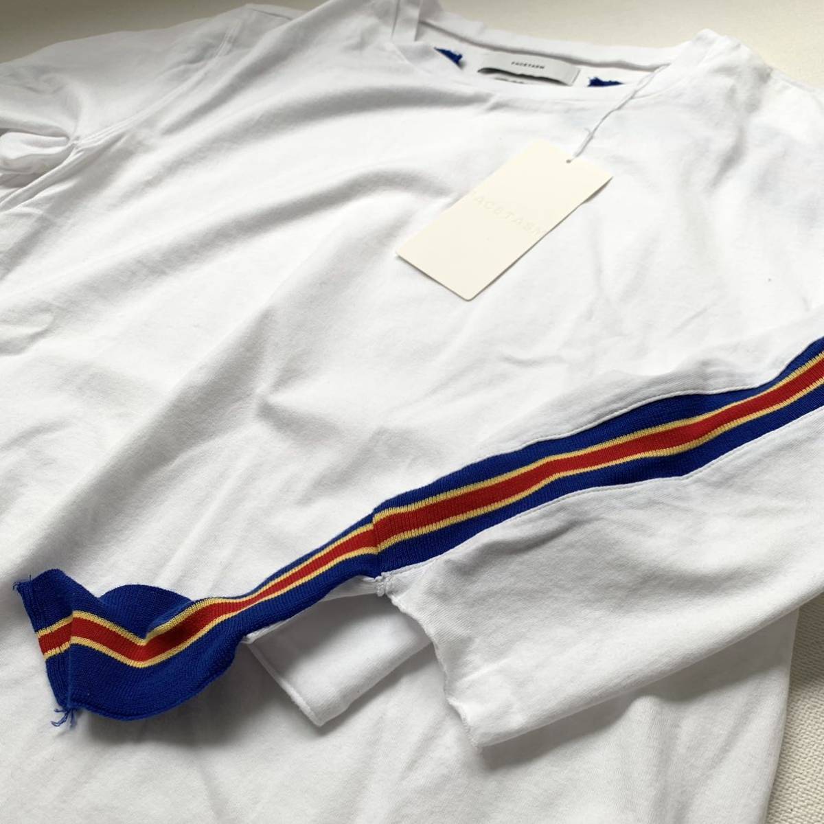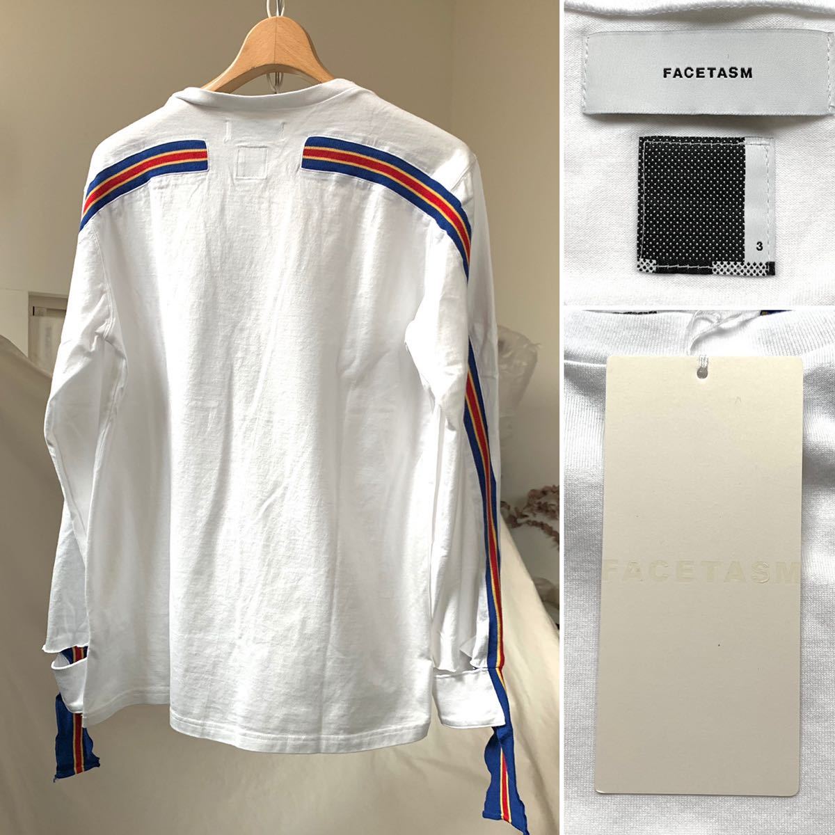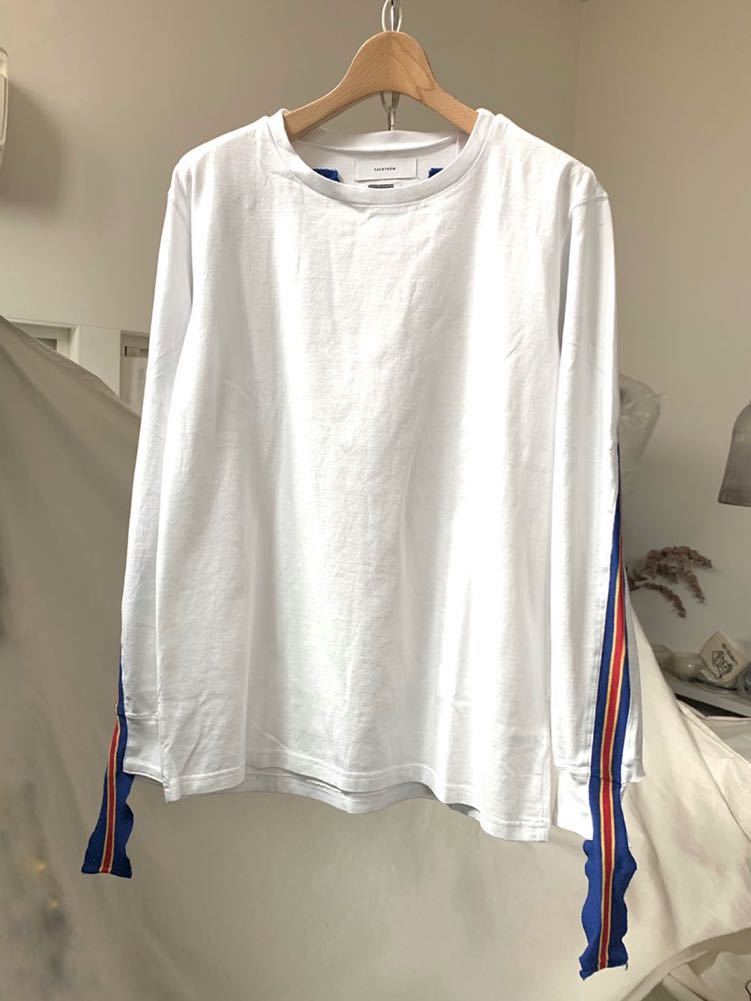 FACETASMファセッタズムの2017AWコレクションから、後身頃から両袖に配したライン状のリブデザインを施したロングスリーブカットソー、RIB LONG TEEです。カットオフされた袖先まで伸びた細目のリブデザインが特徴。シルエットはプレーンでゆったりめのサイジングのスクエアカット、タイトなパンツからワイドパンツまでボトムスを選ぶことなくコーディネートできるアイテムです。