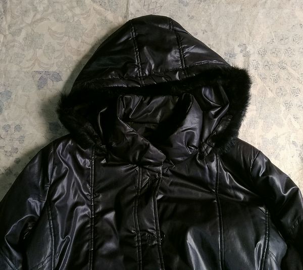 前面はファスナーとボタンです。フードは着脱可能です。フードのフチはラビットファーです。