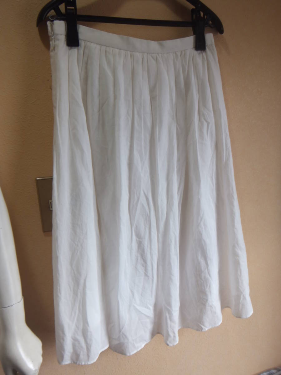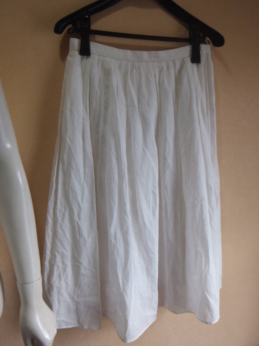 状態は、着用感少なめの印象です。 サイズは36、平置きで、ウエスト約32cm、丈約67cmです。 素敵です。 注)画像の白い丸はフラッシュの加減で、汚れなどではございません |