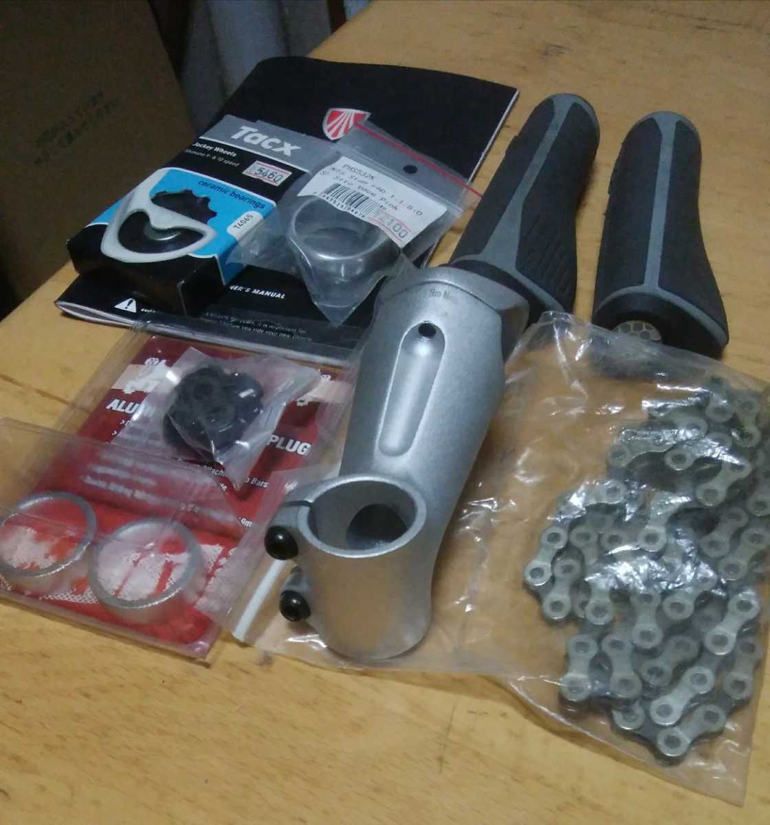 TREK7.6FXの自転車部品です。購入後すぐにいろいろ付け替えたのでほぼ未使用です。長期に保管しておりました。互換性などはわかりませんが、わかる範囲で質問にお答えします。