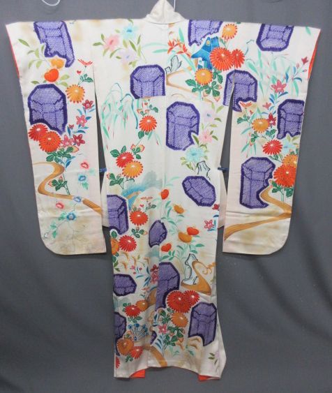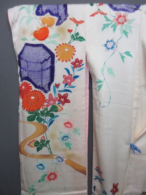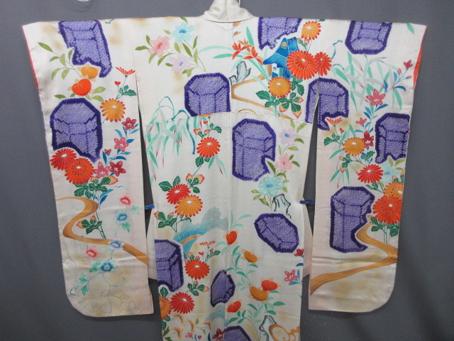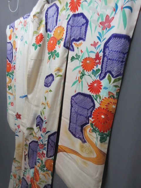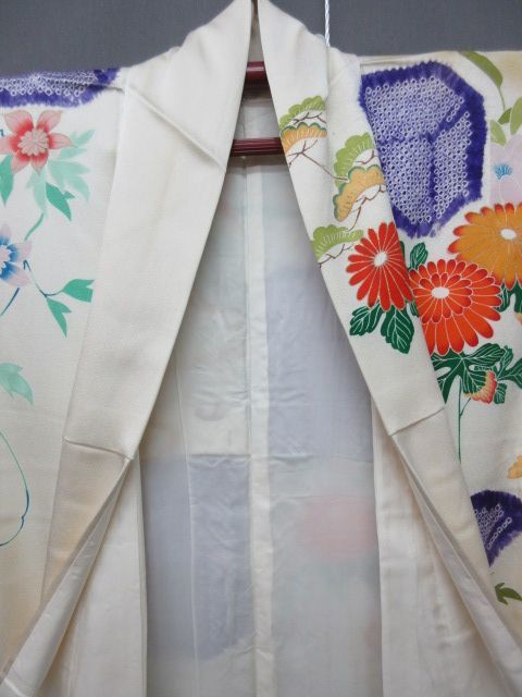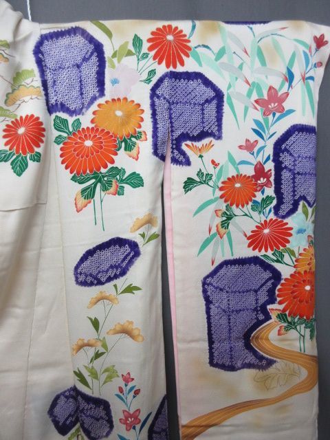振袖 絞り風法界と菊()部分シシュウ) 正絹