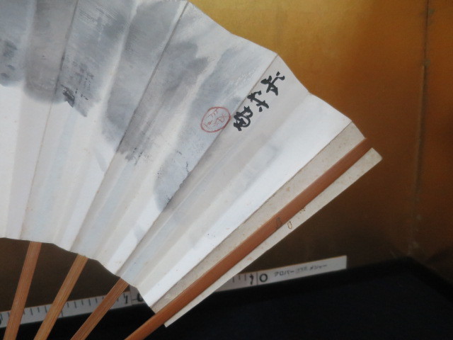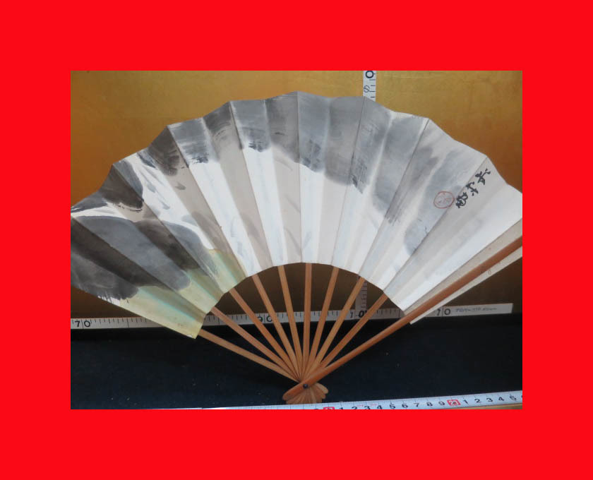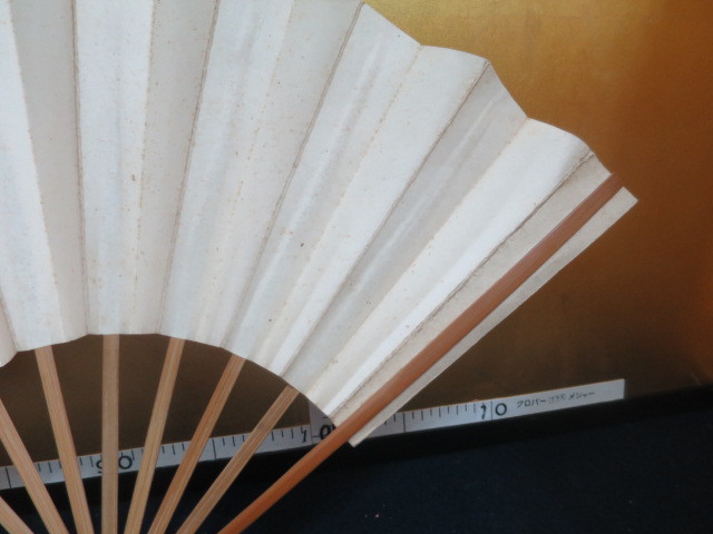 「時代の有る扇子E-171-54」 マニアより出ました。 明治~大正時代 扇骨10本 開きサイズ45cm長さ27.5cm 新品では在りません。時代の有るお品ですのでご理解のある方の 入札を望みます。 |