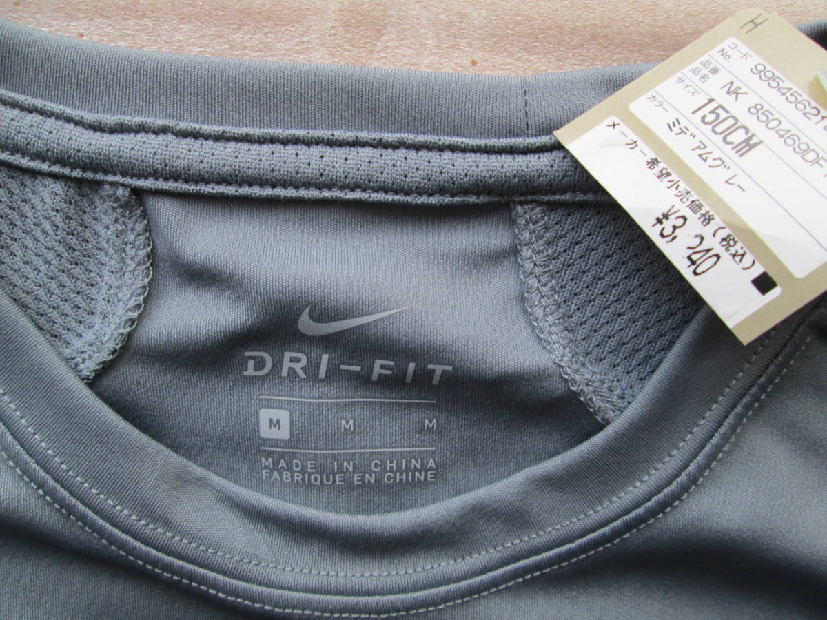 送料込み!即決!【新品タグ付】NIKE ナイキ 150サイズ ◆ ドライ機能Tシャツ 吸汗速乾 グレー色 デカロゴ おしゃれ!送料230円OK!