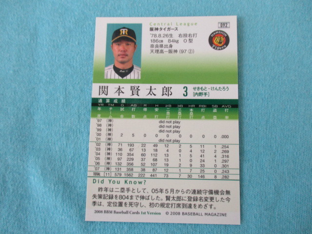 ★BBM 2008★1st Version〔092 関本賢太郎 阪神タイガース〕トレカ♪