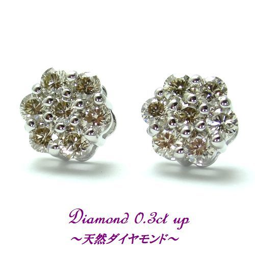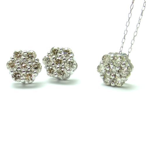 合計0.3カラットアップのダイヤモンドを使用したフラワーデザインのピアスとペンダントネックレスのセットです。