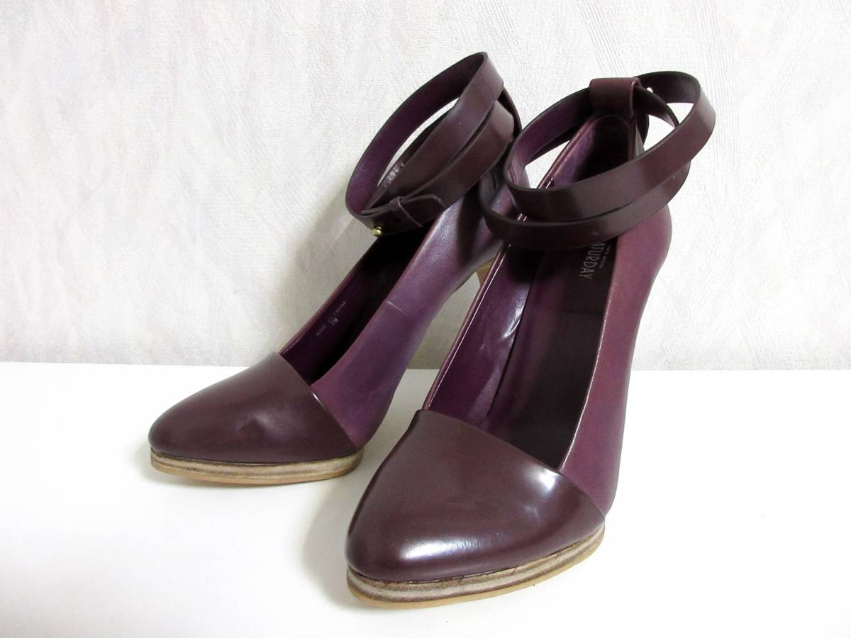 ケイトスペード サタデー katespade Saturday アンクルストラップ パンプス 紫 ブラウン 7 南3675
