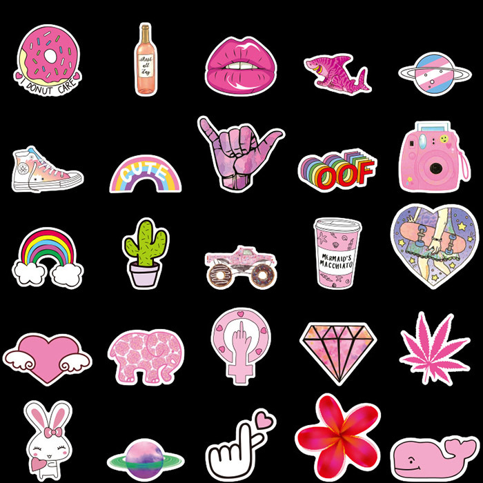 50枚 ピンク ステッカー 防水 耐水 シール 0008-2