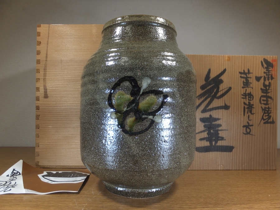 説明 | 佐賀県出身の陶芸家 丸田正美の『黒牟田焼 藁釉流し文 花壷』自作 無傷 共箱 シオリ付です。 状態は良好です、このままで使用して楽しめます。 箱は経年感がありますが、収納には何も問題はありません。 見難いですが、高台脇に「正」と銘があります。 胴に藁釉を流し掛け、三方に花弁をあしらい、 弓野焼などに見られるタンパンと言われる緑釉が大変珍しい花壷です。 程良い大きさで花が生けやすく、又、大きさもありますのでこのまま飾られても存在感のある作品です。 コレクターの放出品です、画像で御確認下さい。 ★九州地方の買出し品です。 買出したままでの出品です、御入札宜しくお願い致します。 入札は早めにお願い致します。 一人でも入札があれば梱包作業に入りますので、素早い発送が可能です。 早期終了あり。 丸田正美は、(1979.12.6-1925.9.10) 日本工芸会正会員 黒牟田窯 号:麦民。 1925年9月10日佐賀県武雄市の窯元に生まれ。 42年、佐賀県立有田工業高校窯業科を卒業、 50年から浜田庄司に師事する。 60年佐賀県展で最高賞受賞。 63年第37回国展に入選。 66年日本工芸会西部展で最高賞受賞。 70年から日本伝統工芸展。 73年から一水会展に出品し、 78年日本工芸会正会員となる。 同年、東急本店で九州陶芸三人展を開催する。 桃山末期に開窯した黒牟田窯の伝統技法に、 塩釉を使って民芸的な独特の作風を築いた。 代表作に「塩釉鉄砂呉須陶鉢」など。 また、邸内に肥前民芸陶器館を設け一般に開放した。 12月6日胃ガンのため佐賀県藤津郡の国立嬉野病院で死去した 享年54。 |