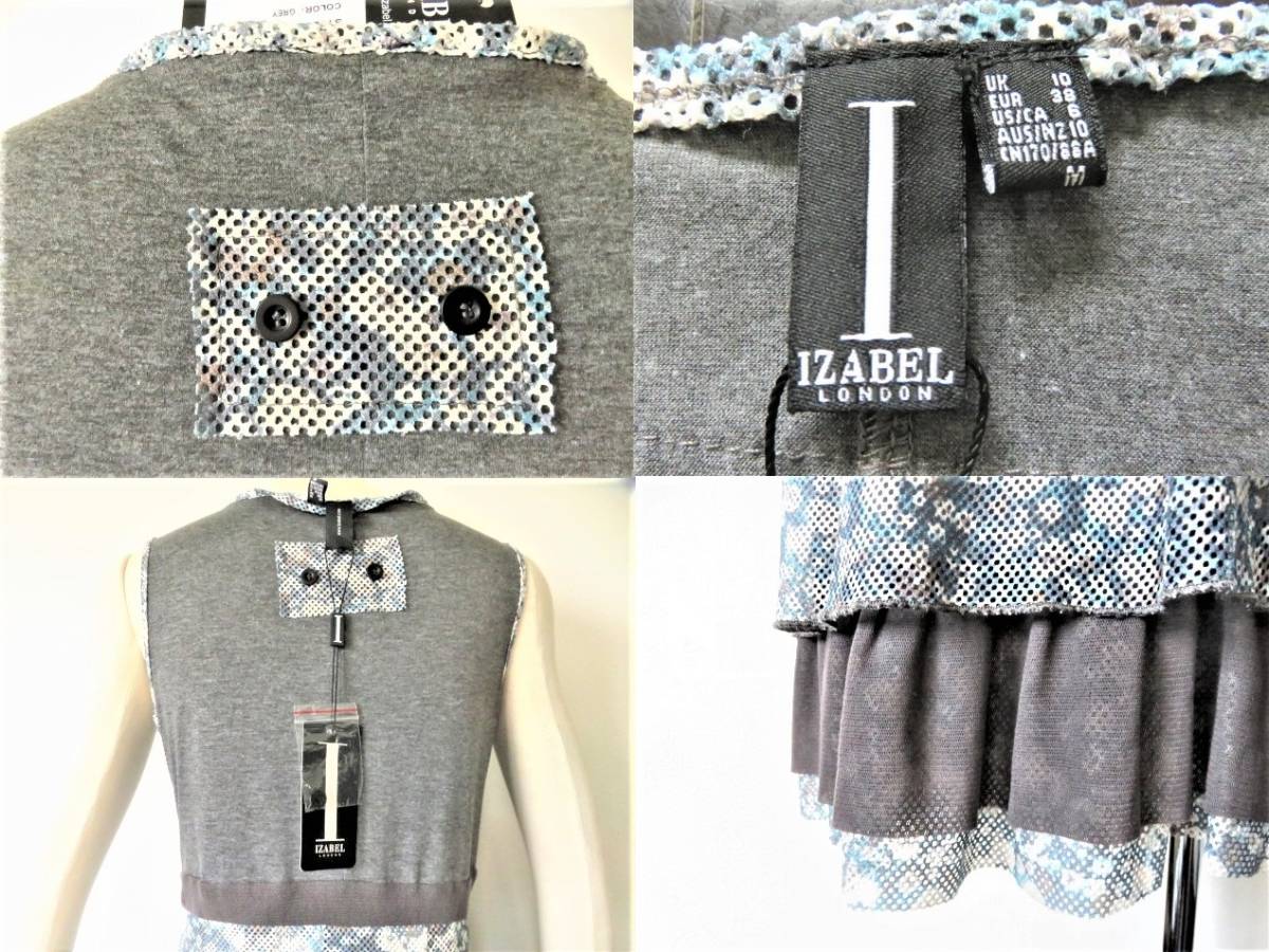 ■新品未使用美品ジュピターショップチャンネル【IZABEL LONDON】イザベル ロンドン高級パンチ穴 袖なし ワンピース 9号M o185
