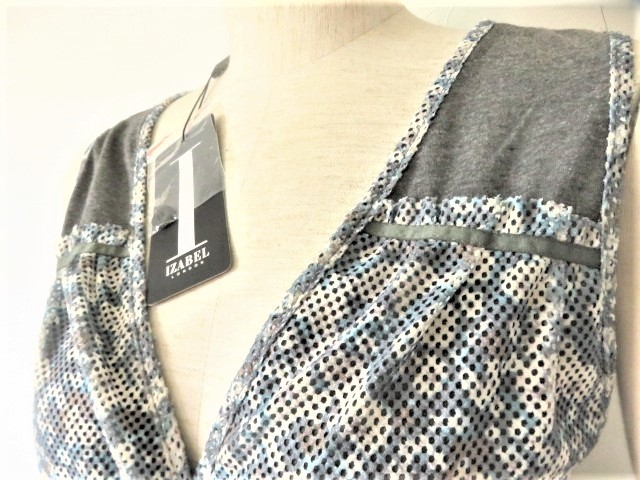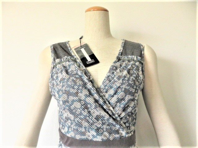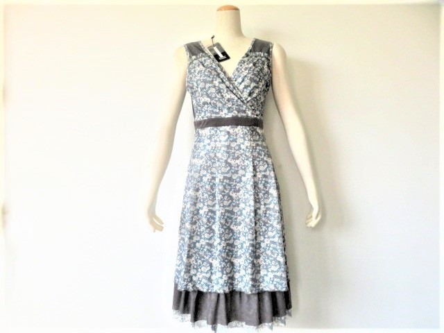 ジュピターショップチャンネル【IZABEL LONDON】イザベル ロンドンの高級パンチ穴 袖なし ワンピース、お色はグレー×サックスブルーです。