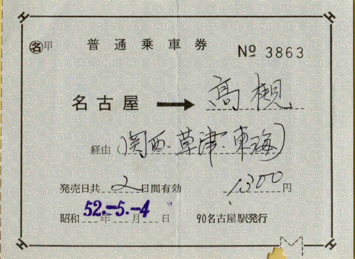 ◎ 国鉄 軟券 【 普通乗車券 】 名古屋 → 高槻