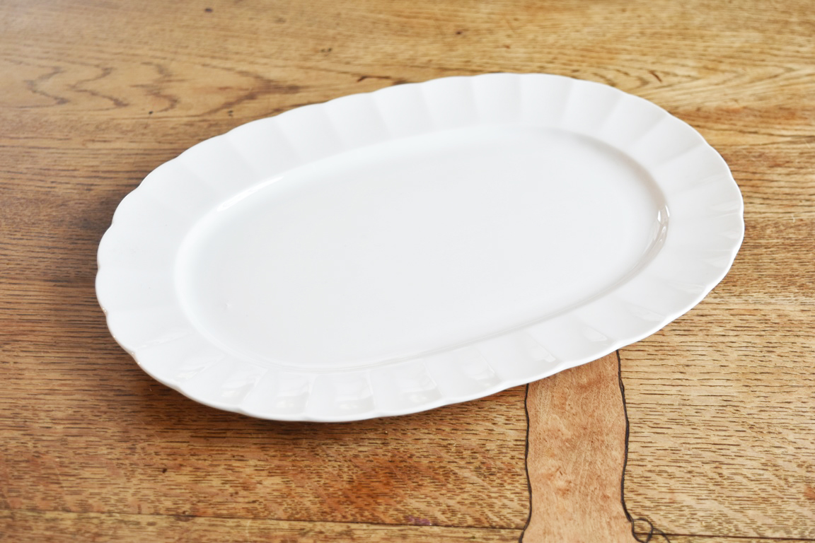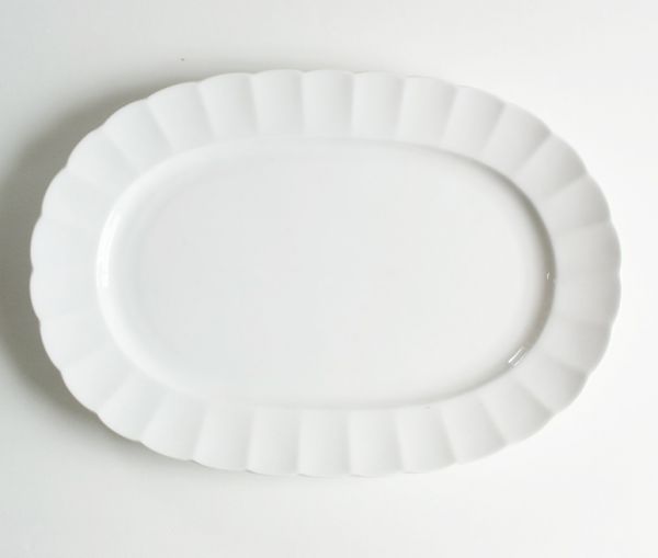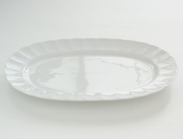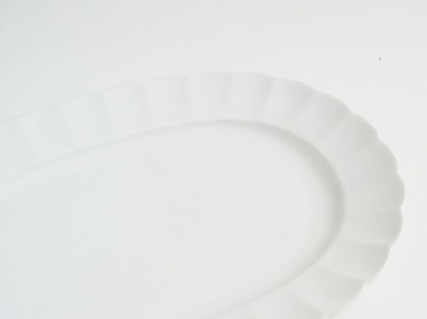 【白い食器】強度3倍 われにくい 強化磁器 ティアラ TIARA ピュアホワイト オーバルプレート フリル 盛皿 1枚  (複数落札可能)