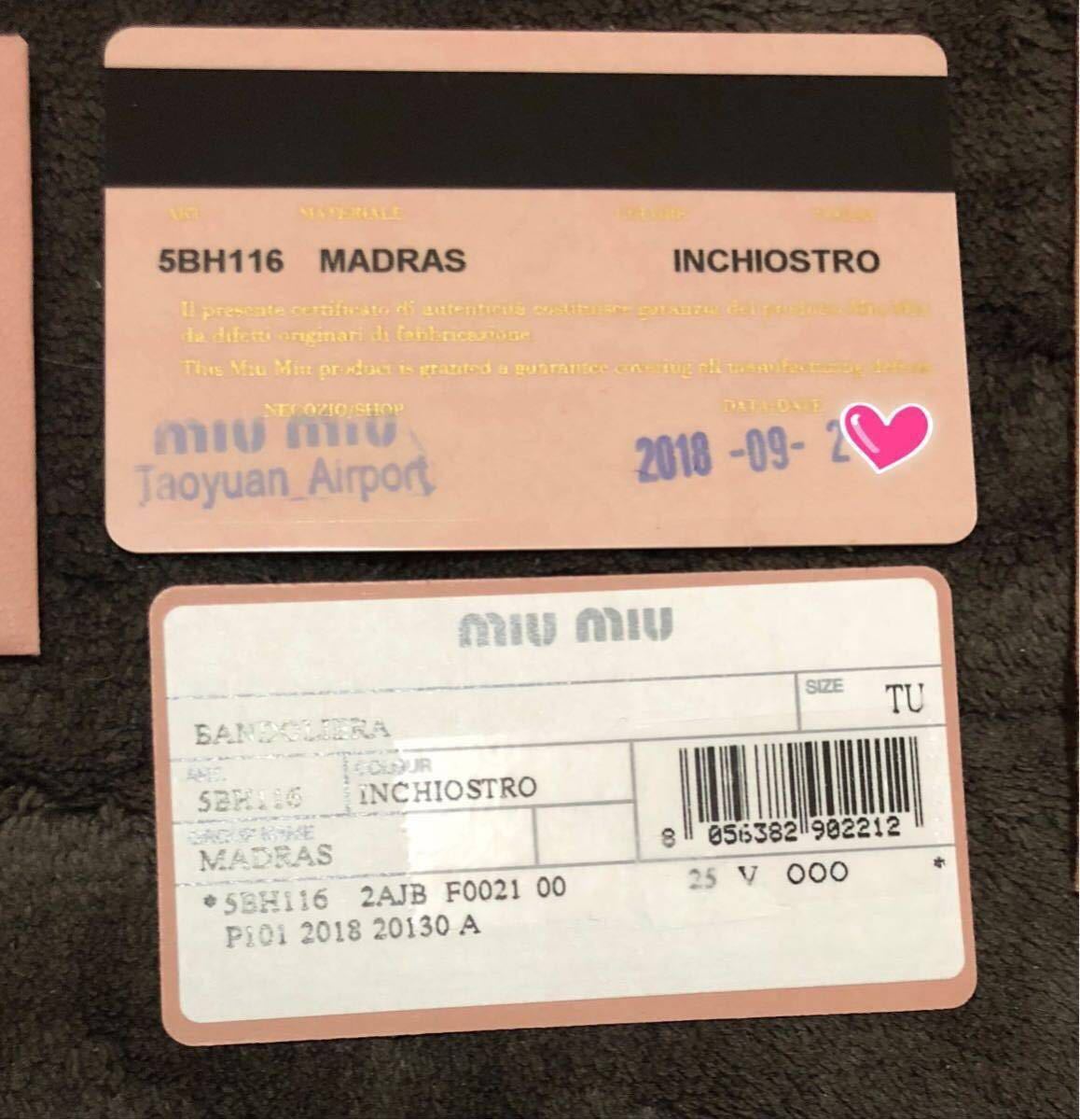 購入は2018年9月下旬、台湾の桃園国際空港内の免税店エリアにあるmiumiuのショップでの購入なので本物です。