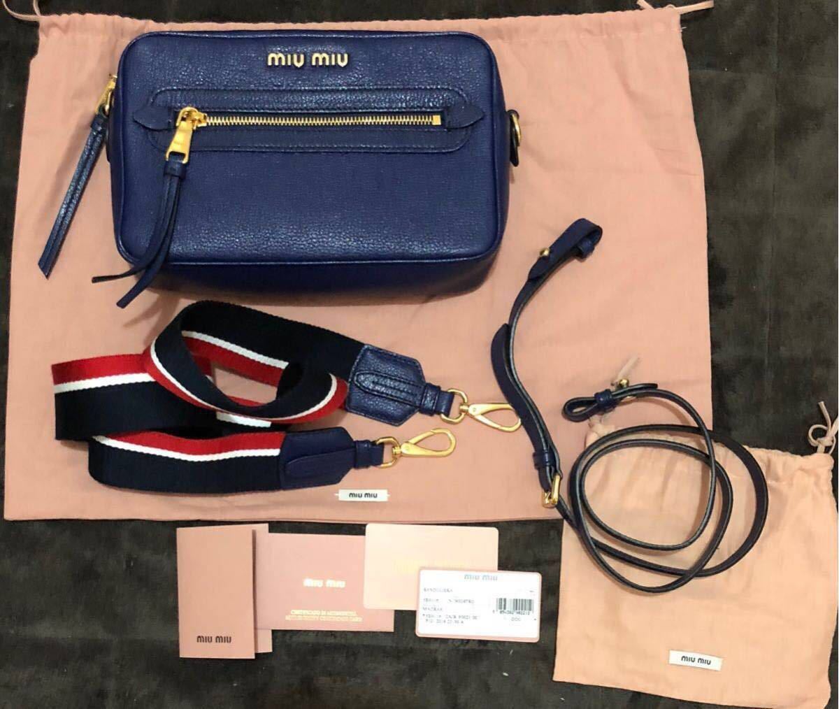 miumiuの新作レザー ショルダーバッグです。付属のショルダーが2パターンでレザーのきちんと感も出せるしカジュアルにも使える、とても優秀なバッグです。