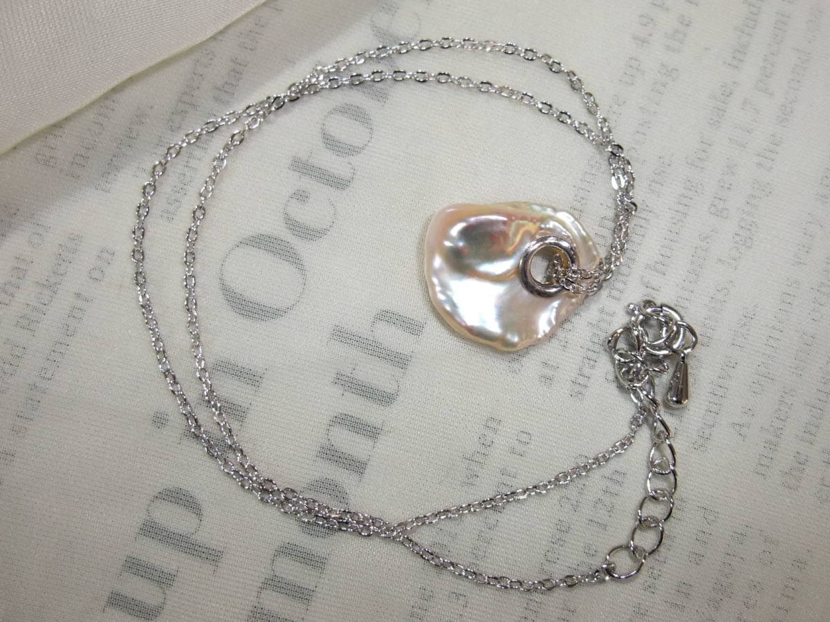極上テリツヤ!!花弁型芥子真珠淡水パール本物バロック真珠ペンダントネックレス高品質シンプル系♪ハトメカン部分はシルバー925銀製104-9