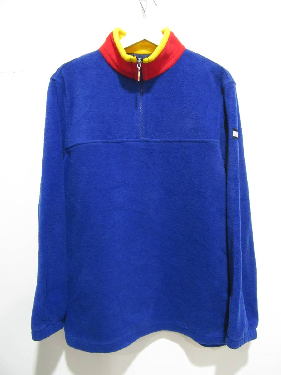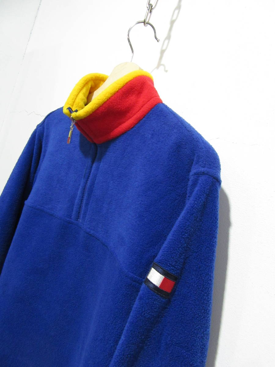 ☆送料無料☆Tommy hilfiger☆ハーフジップフリース☆M☆90s☆フラッグ☆青☆