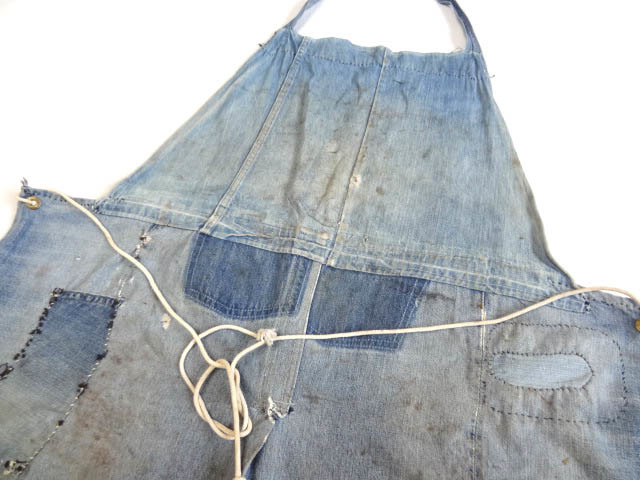 ビンテージ 希少 50S 60S インディゴ デニム 足巻き ハンドメイド エプロン 色落ち リペア ダメージ 雰囲気 レア 赤耳 再構築 リメイク 珍