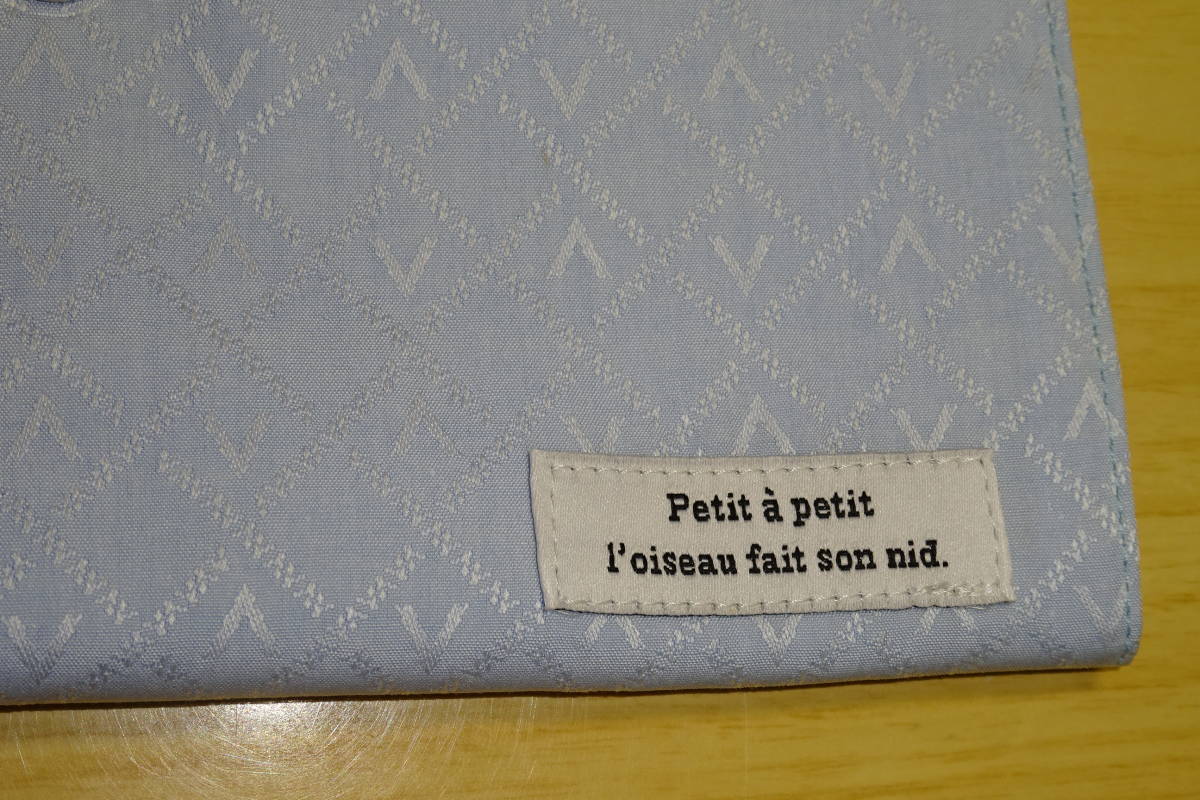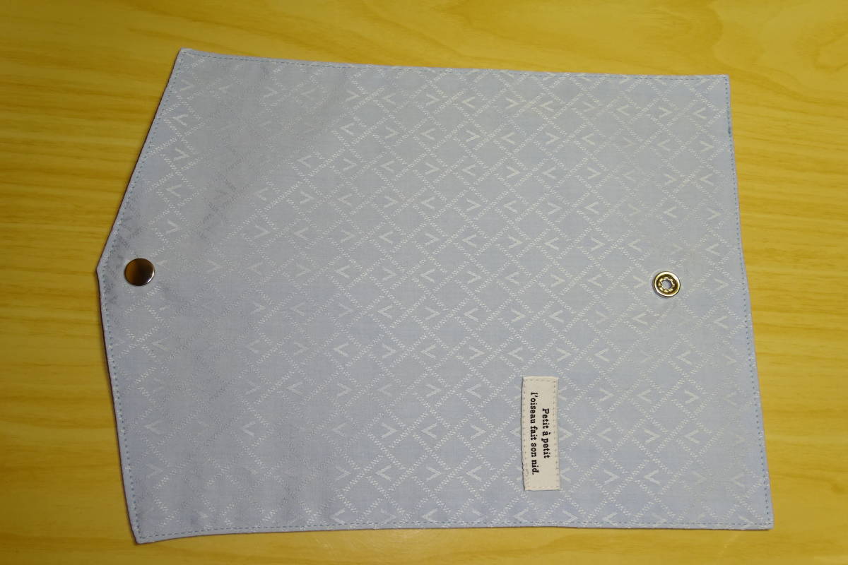 プリーツマスクケース M 10.5×20㎝ ジャガード織 サックス 水色 タグ付き マスク入れ フラットタイプ 仮置き ハンドメイド