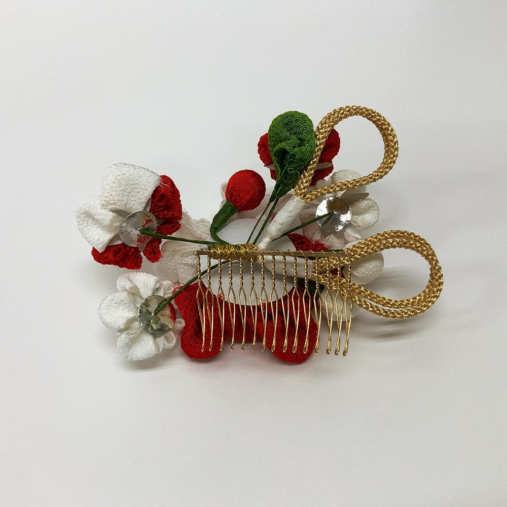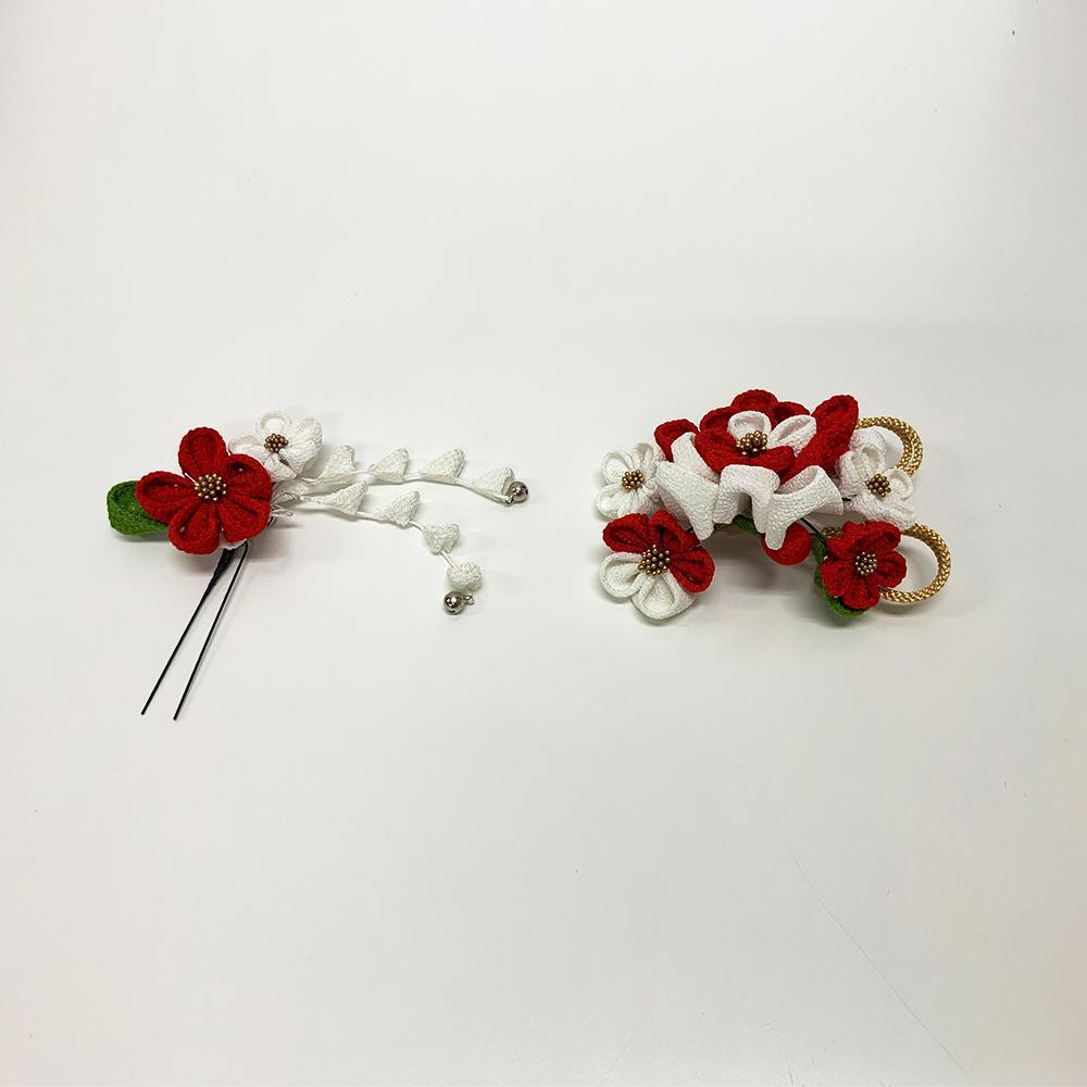 【開封済新品】レディス/髪飾り つまみ細工 2点セット/レッド・ホワイト/La020_AQ001