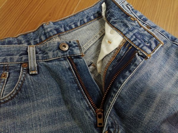 擦り切れのダメージ、色落ち感のあるジーンズです。