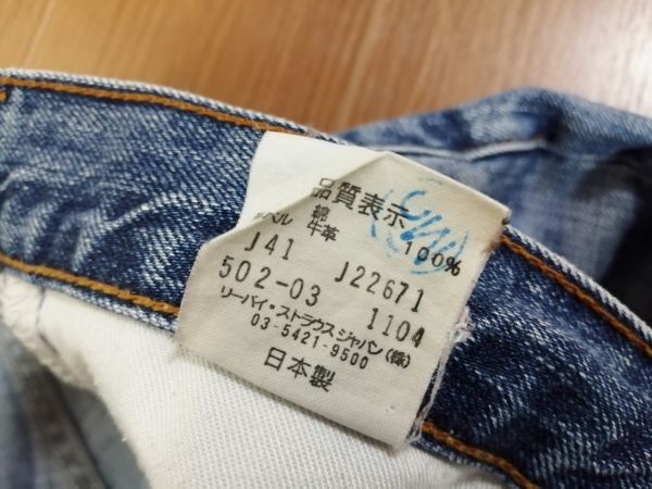 kkyj3985 ■ Levi's 502 ■ リーバイス ジーンズ デニムパンツ ジーパン Gパン ボトムス ブルー 青 ダメージ 30 S~M