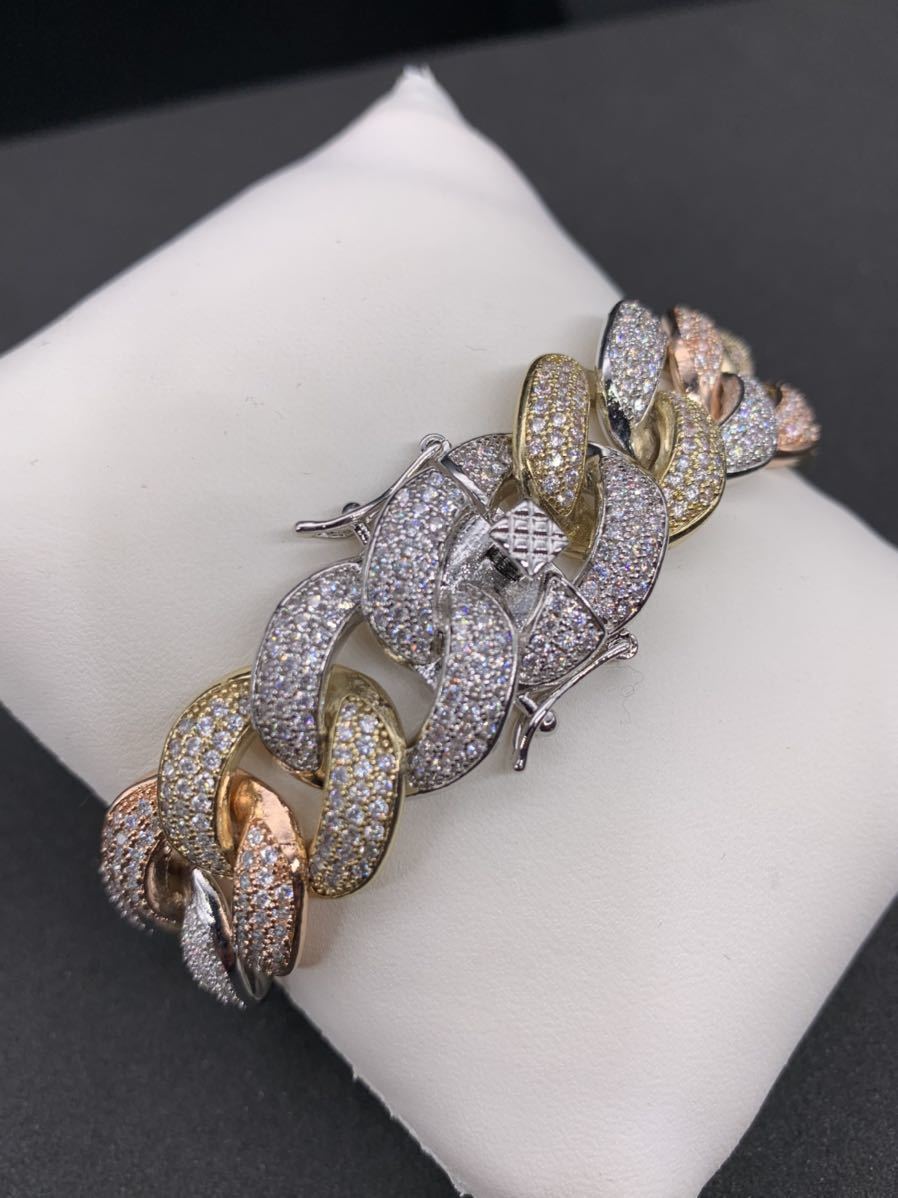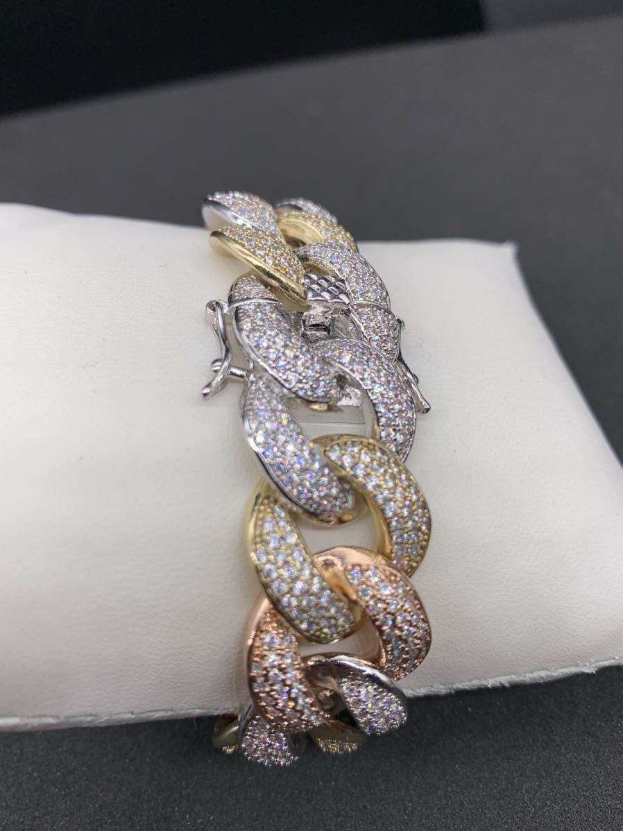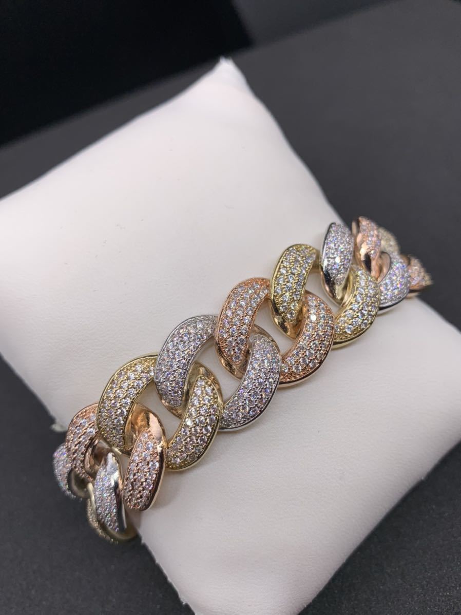 豪華な三色 トリコロール 輝くジルコニア がお洒落度、注目度MAXなブレスレットです。