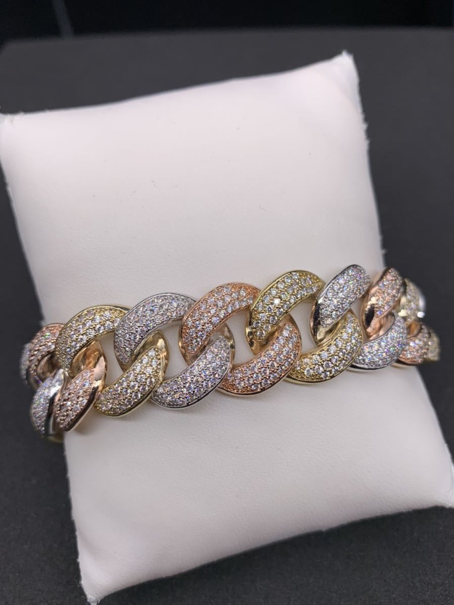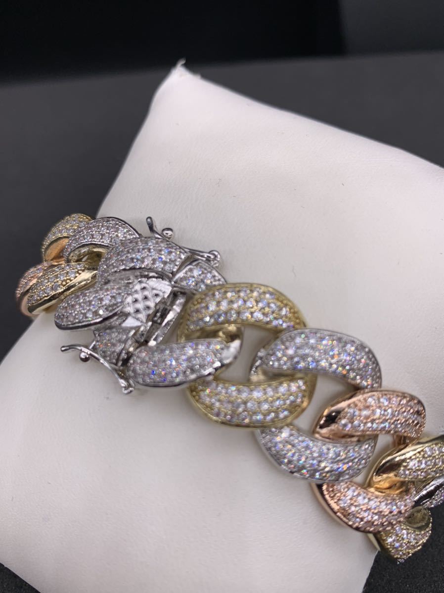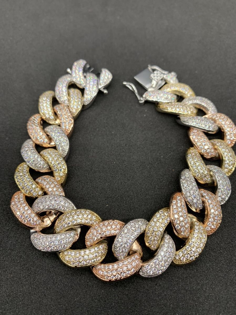 豪華な三色 トリコロール 輝くジルコニア がお洒落度、注目度MAXなブレスレットです。