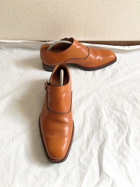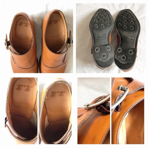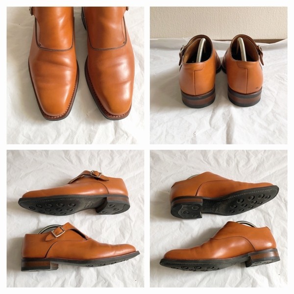 サイドモンクストラップシューズを出品します。 インソールにイニシャルだけ書かれていますので、恐らくオーダーメイドかと思われます。 表示等ないので断言保証致しかねますが、レザー系の素材を丁寧に仕立てています。 非常にスタイリッシュで色気のある靴です。 この機会にいかがでしょうか。 状態は写真にある様に経年使用に伴う摺れ、薄汚れ、皺、傷、ソールの汚れ・すり減りに加え かかとやつま先に汚れや傷等ございます(写真参照)が、 使用に支障の出るダメージ無く、10段階中6.5位かと思います。 ソールに関しては写真でご確認下さい。 ただユーズドで見落としがあるかもしれません。 写真等ご確認の上上記を理解してご承知の上ご入札お願いします。 尚シューツリーは付属しません。 |