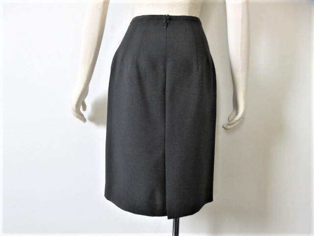 スカートは、バックセンターでファスナー、ホック止め、バックセンタースリット、総裏地。